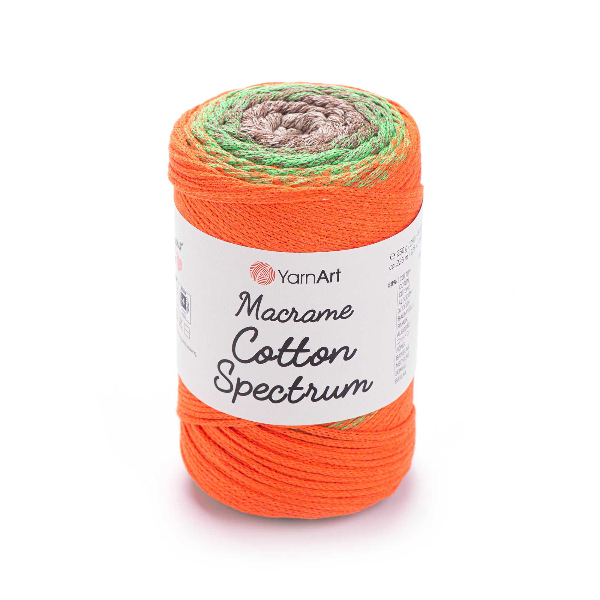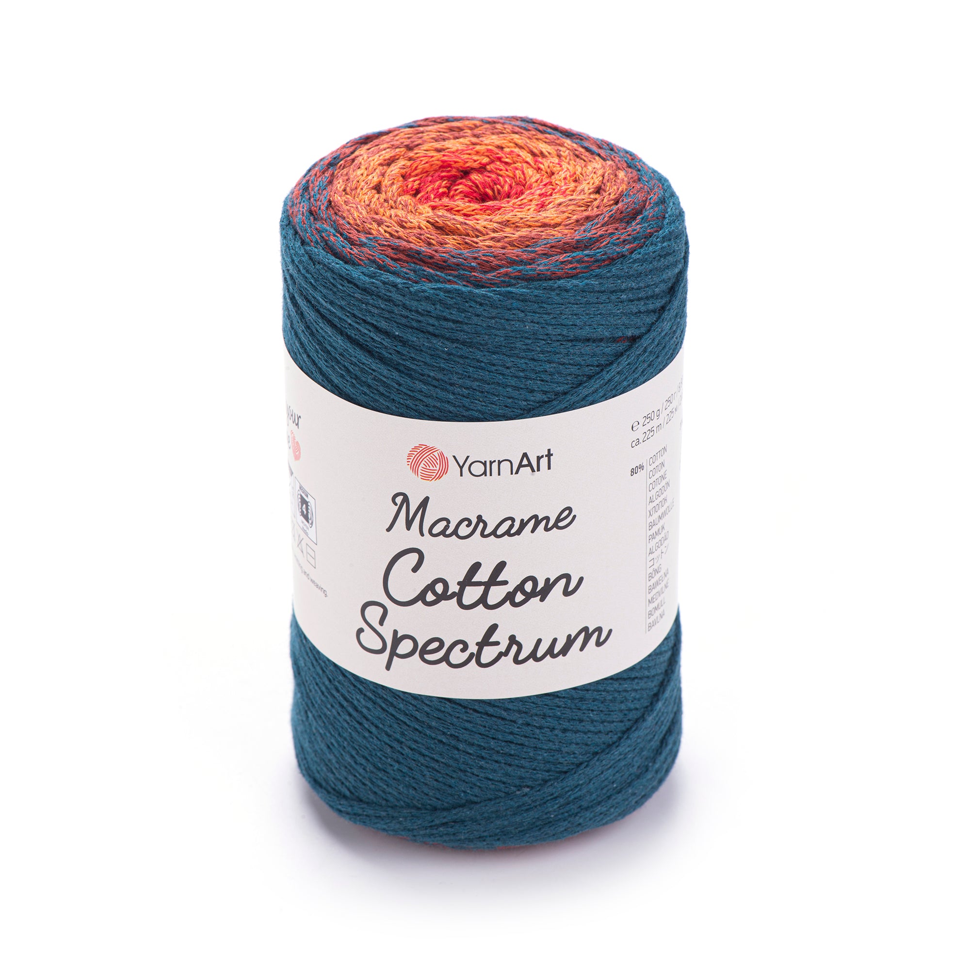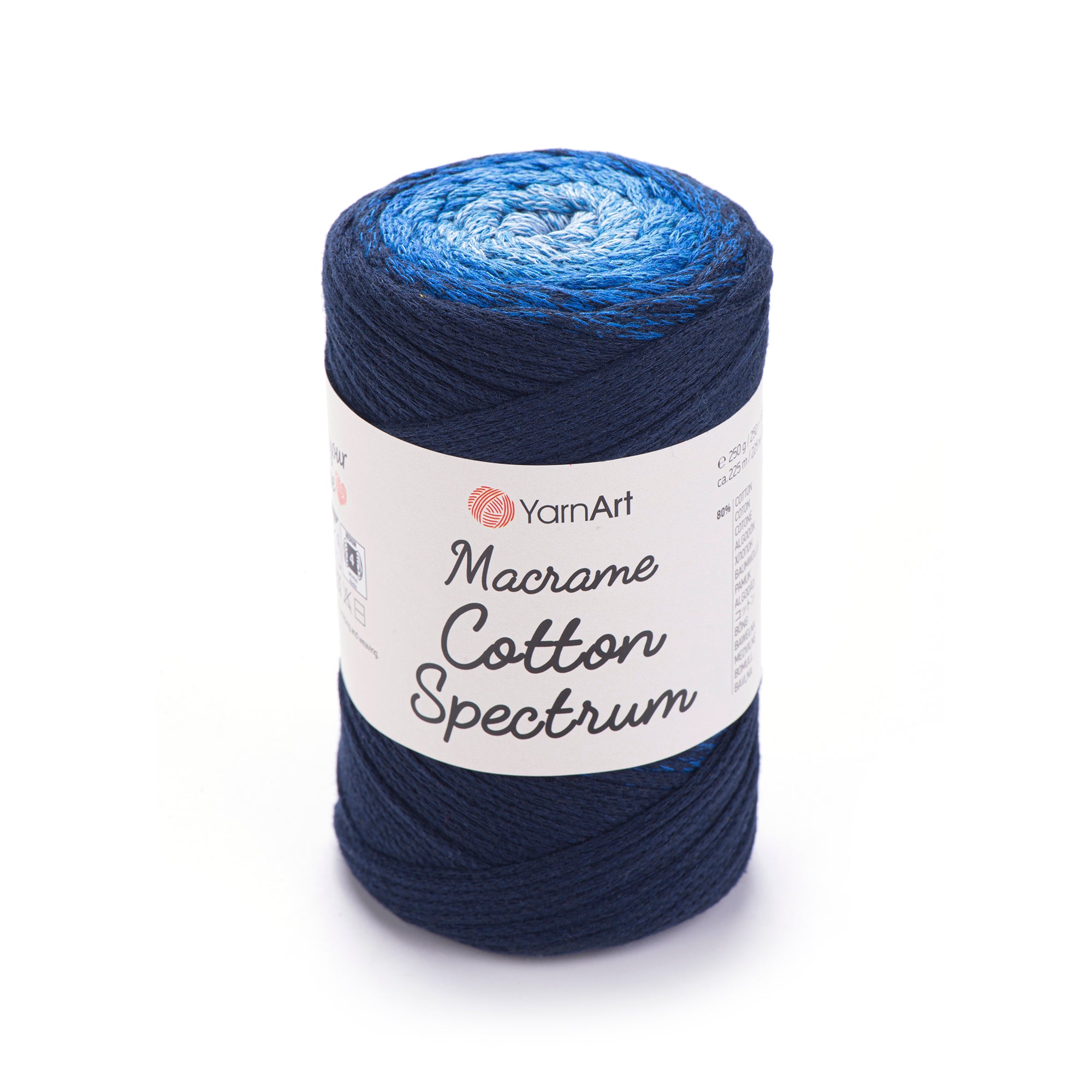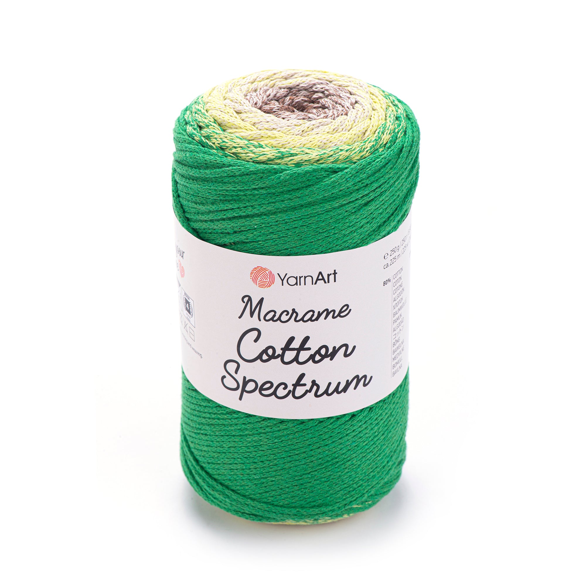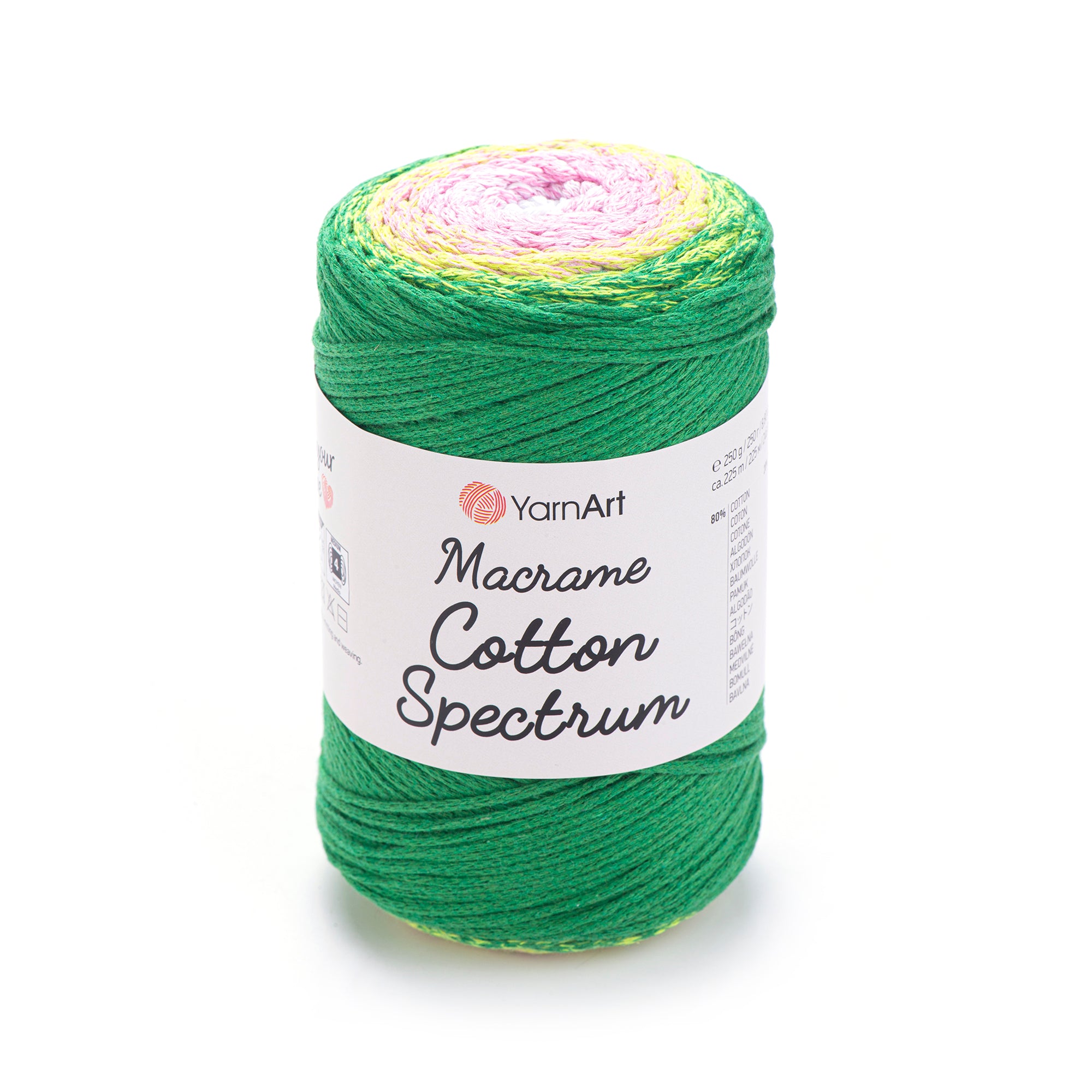 Add a pop of color to your macrame projects with YarnArt Macrame Cotton Spectrum! This unique yarn combines compatible colors in one ball, allowing for endless design possibilities. Use it for wall hangings, pillows, and more. Upgrade your summer style with this playful and versatile yarn.