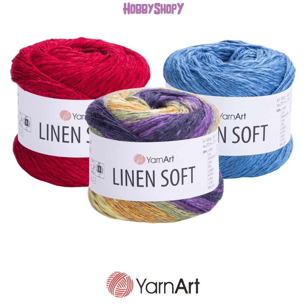 Introducing YarnArt Linen Soft, the perfect blend of cotton softness and breathable linen quality. Its natural structure allows for airflow, making it the ideal choice for your summer knits. With a unique texture created from a mix of different materials, Linen Soft will add an extra touch of movement to your projects. Available in solid and variegated colors for both needles and hooks.