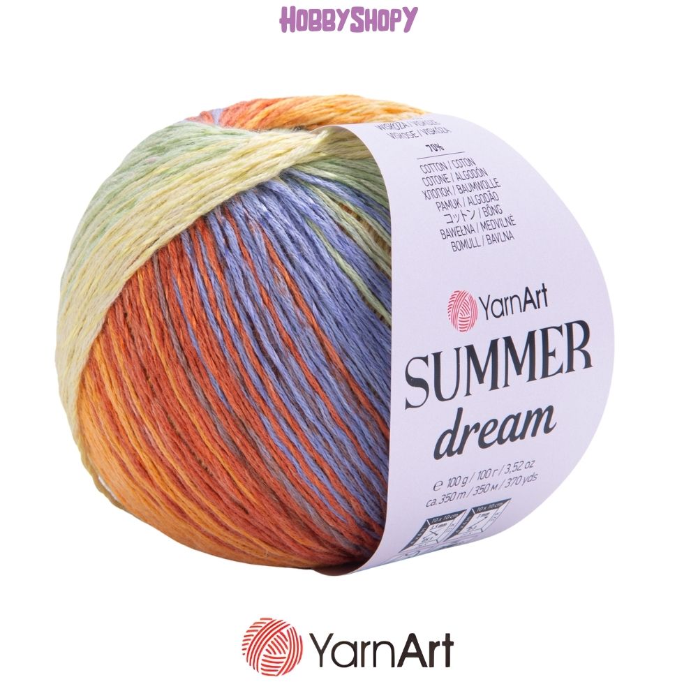 Unleash your creativity with Yarnart Summer Dream! This 70% cotton summer yarn offers a subtle sparkle in unique marbled balls. Its soft texture is perfect for summer blouses, skirts, and dresses. Get playful and knit accessories like hats, bags, and belts. Use with knitting needles or crochet hooks.