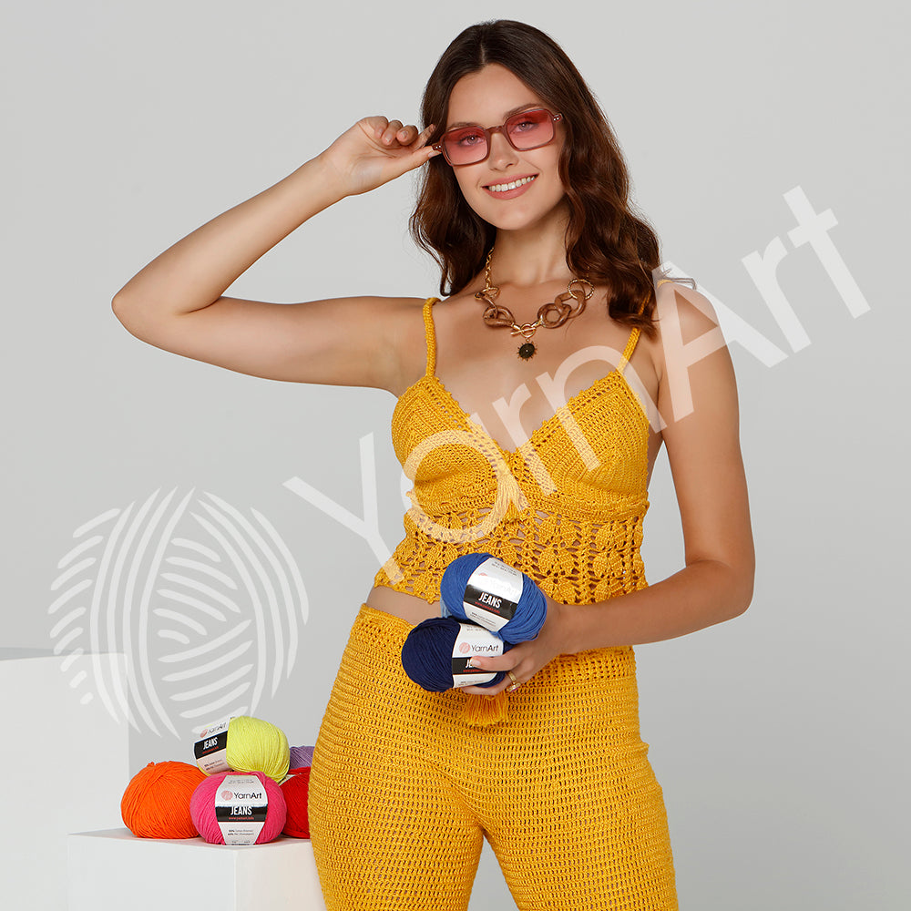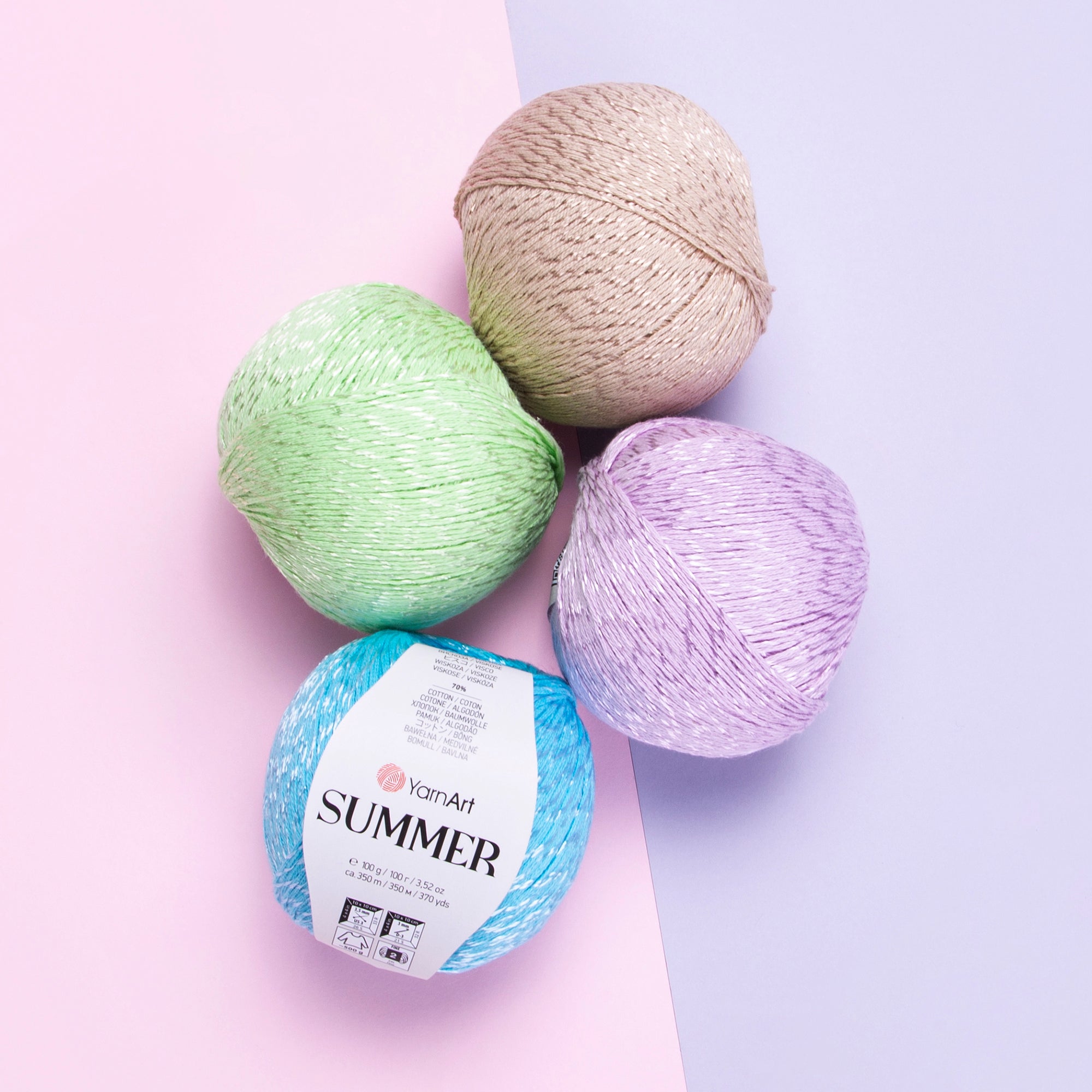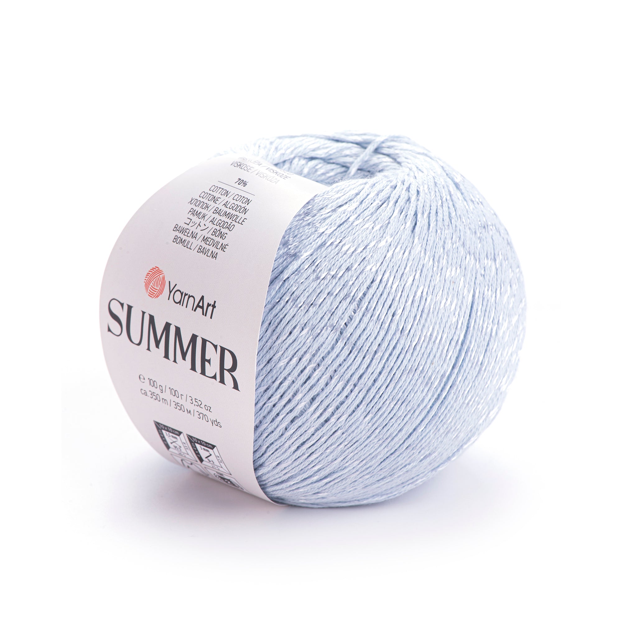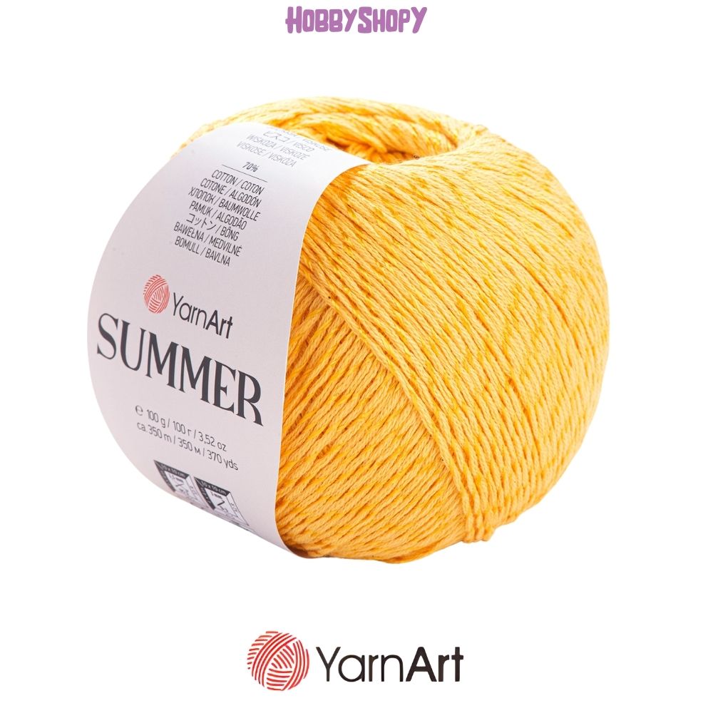 Add some sparkle to your summer with YarnArt Summer! This mercerized cotton yarn is both soft and stylish, perfect for creating cozy blouses, skirts, and accessories. Plus, it's versatile enough to use with both knitting needles and crochet hooks. Available in a variety of plain and marbled colors.