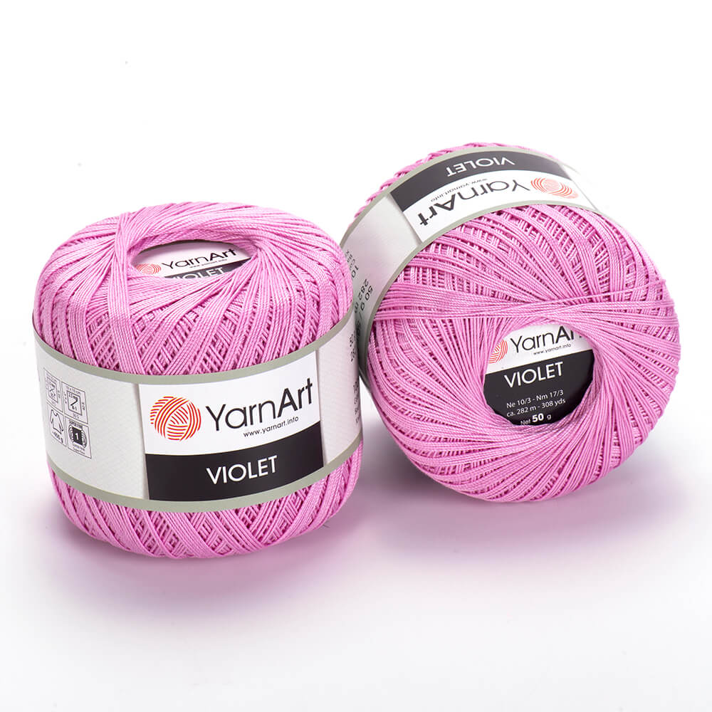 YarnArt Violet is a fine crochet thread made from 100% mercerized cotton, offering a smooth texture and elegant finish. It’s perfect for lacework, home décor, and a wide range of modern crochet projects.