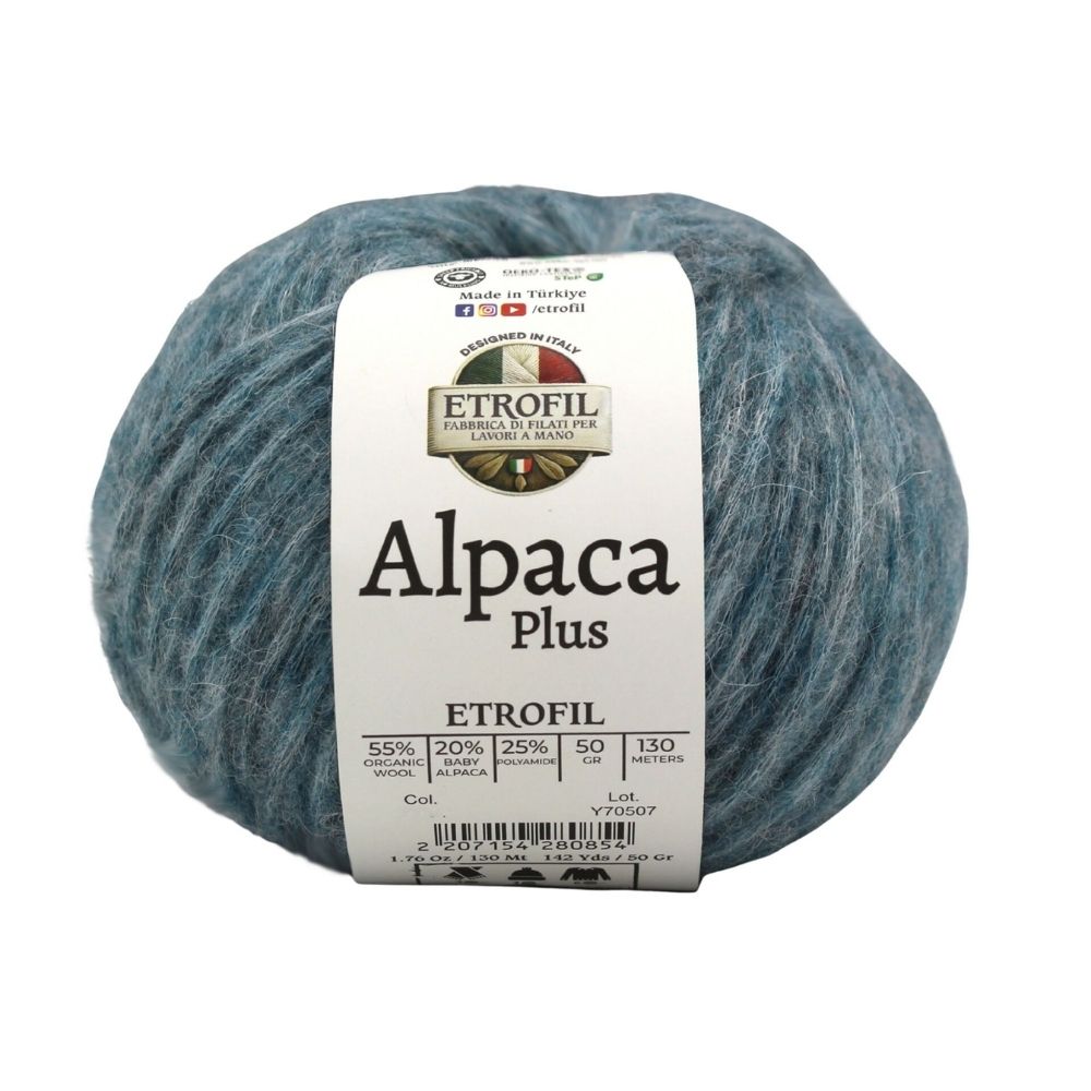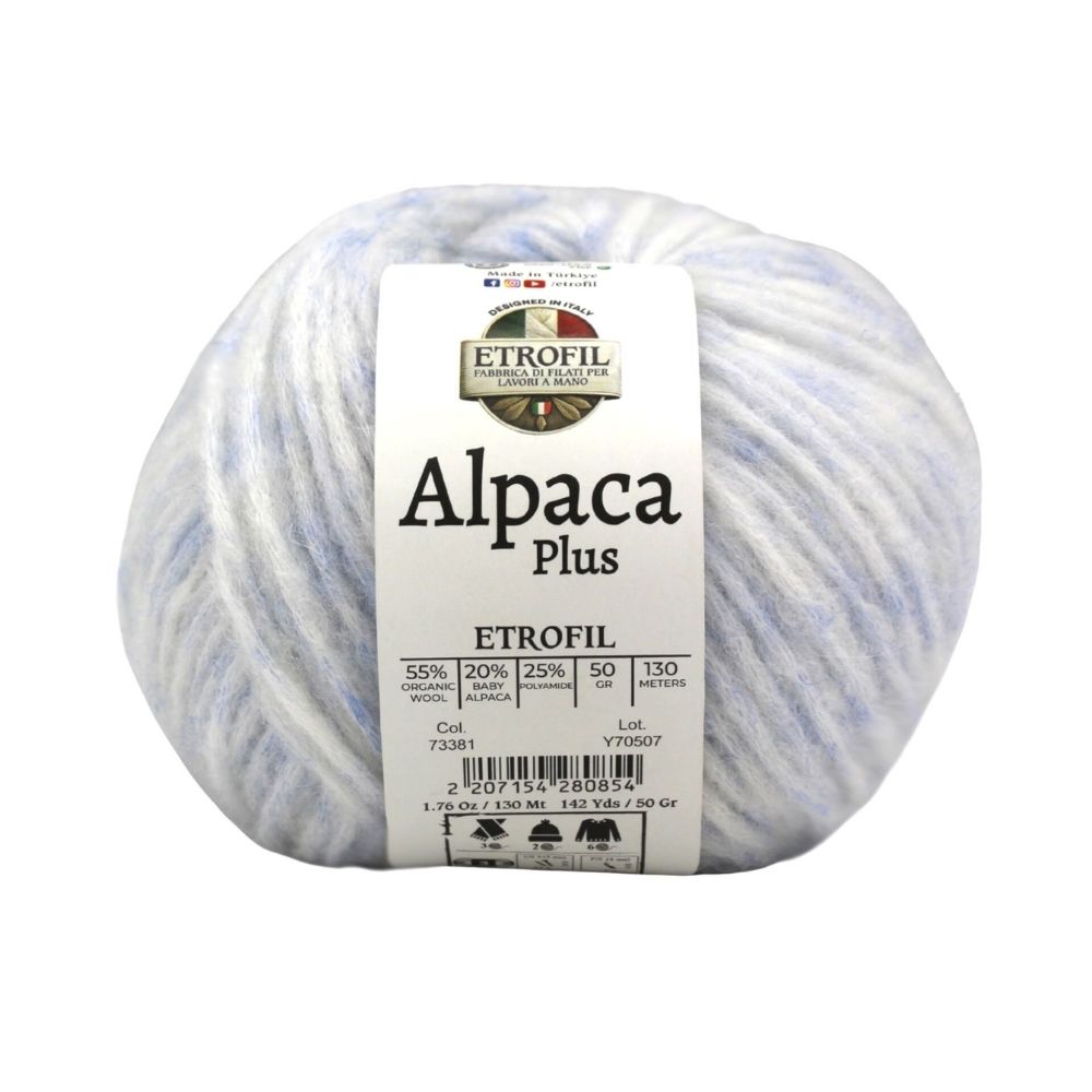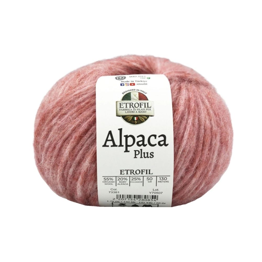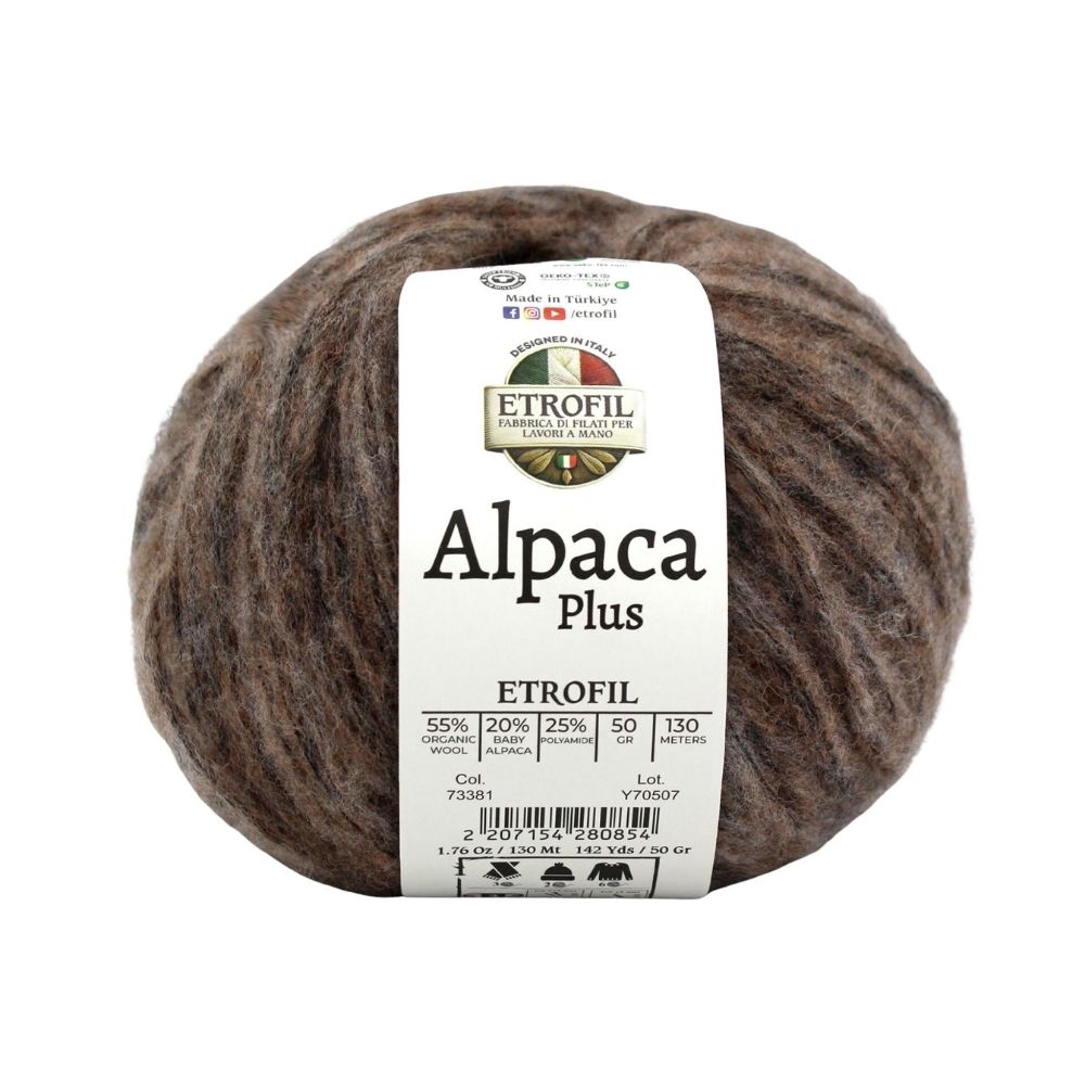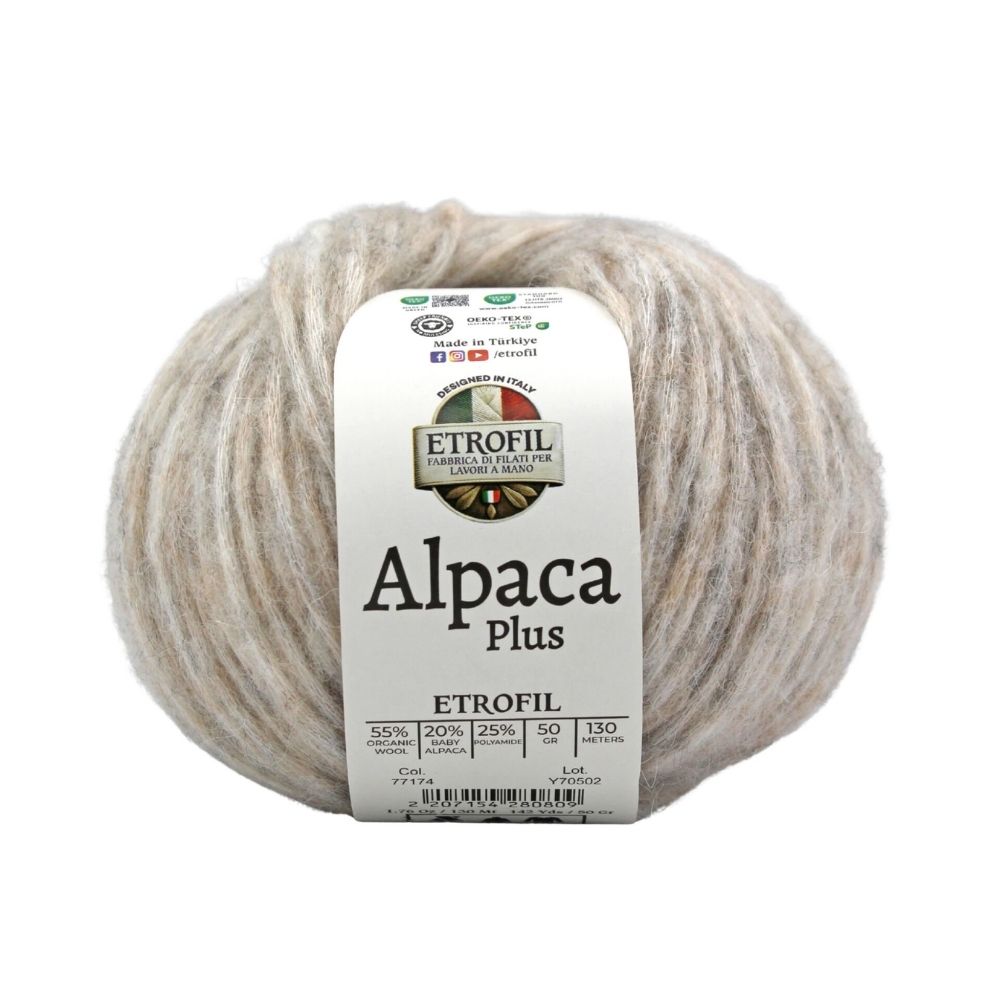 Yarn Weight: Light (3)Etrofil Alpaca Plus combines the finest natural fibers to deliver exceptional softness, warmth, and durability. Organic wool provides natural insulation and breathability, baby alpaca adds a luxurious silky touch, while polyamide enhances strength and shape retention for long-lasting projects.