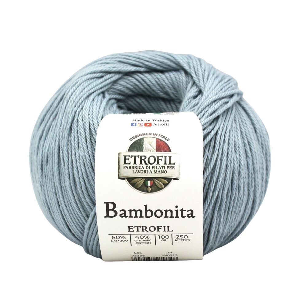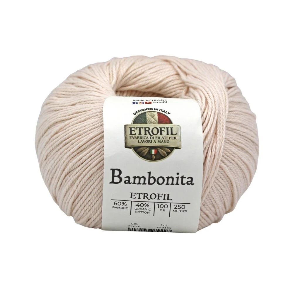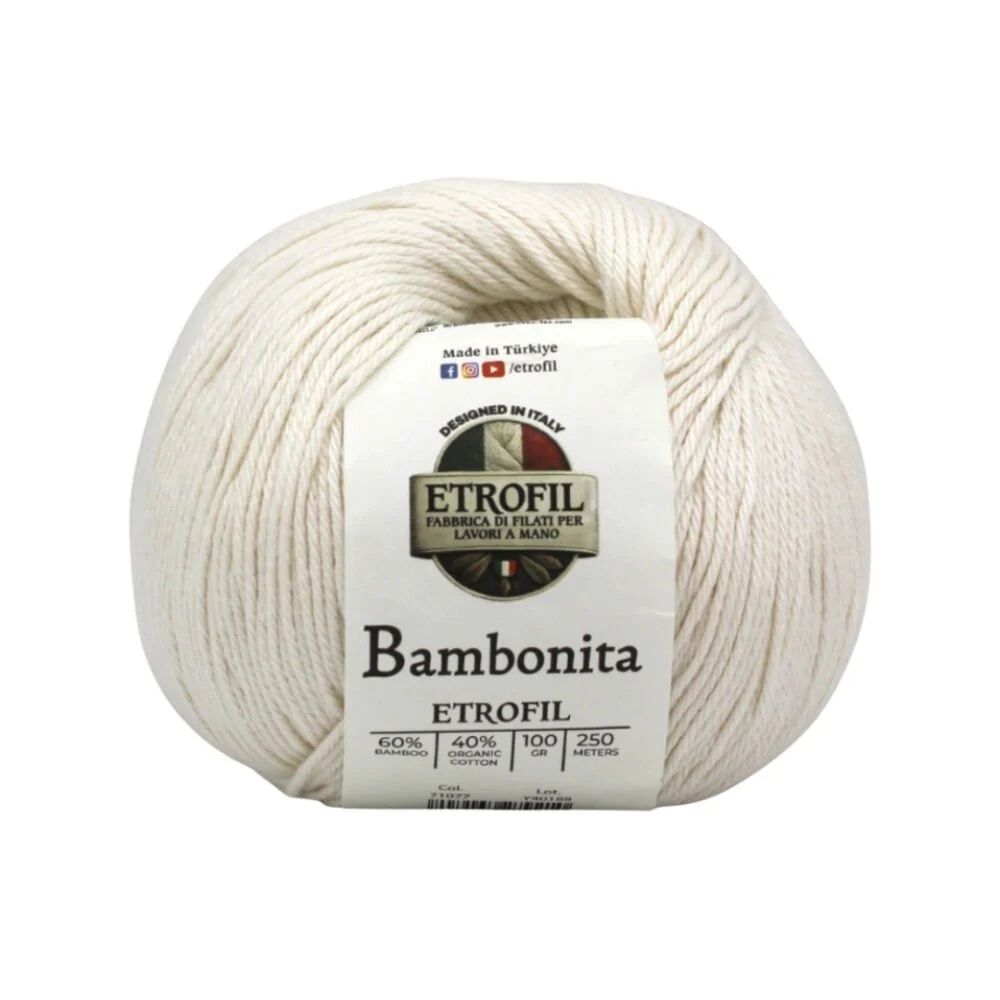 Etrofil Bambonita is a lightweight, breathable, and skin-friendly yarn made from a 100% natural blend of bamboo fiber and organic cotton. The bamboo fiber adds a silky sheen and cooling effect, while organic cotton provides softness, breathability, and all-day comfort.