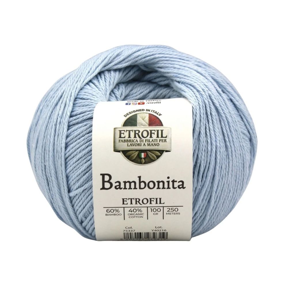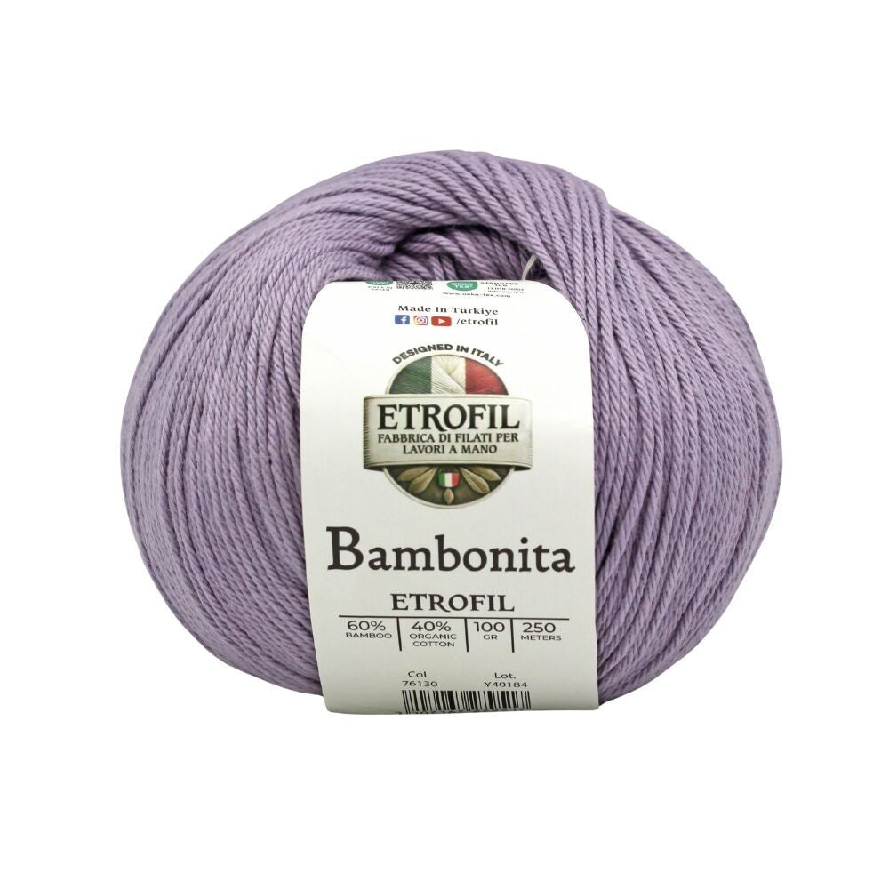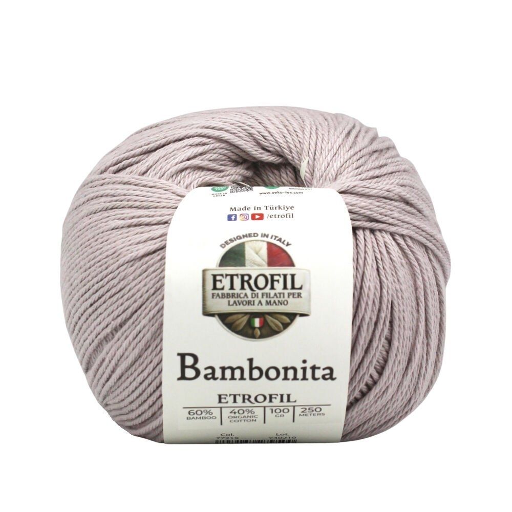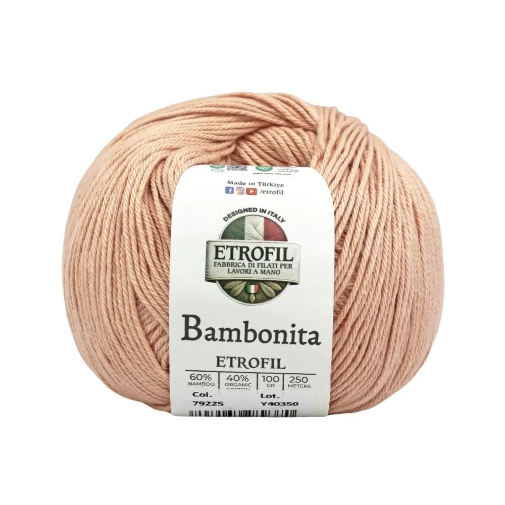 Etrofil Bambonita is a lightweight, breathable, and skin-friendly yarn made from a 100% natural blend of bamboo fiber and organic cotton. The bamboo fiber adds a silky sheen and cooling effect, while organic cotton provides softness, breathability, and all-day comfort.