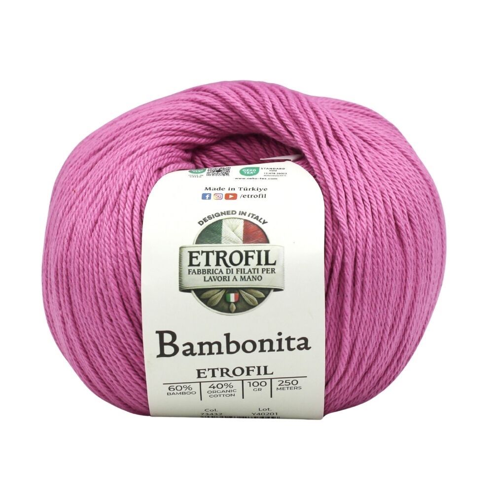 Its smooth yet durable structure makes Bambonita ideal for baby garments, summer clothing, and amigurumi projects. The yarn holds its shape beautifully in toys while remaining gentle on sensitive skin. Free from animal fibers and allergens, Bambonita is a perfect choice for warm-weather knitting and crochet projects that require softness, strength, and vibrant color definition.