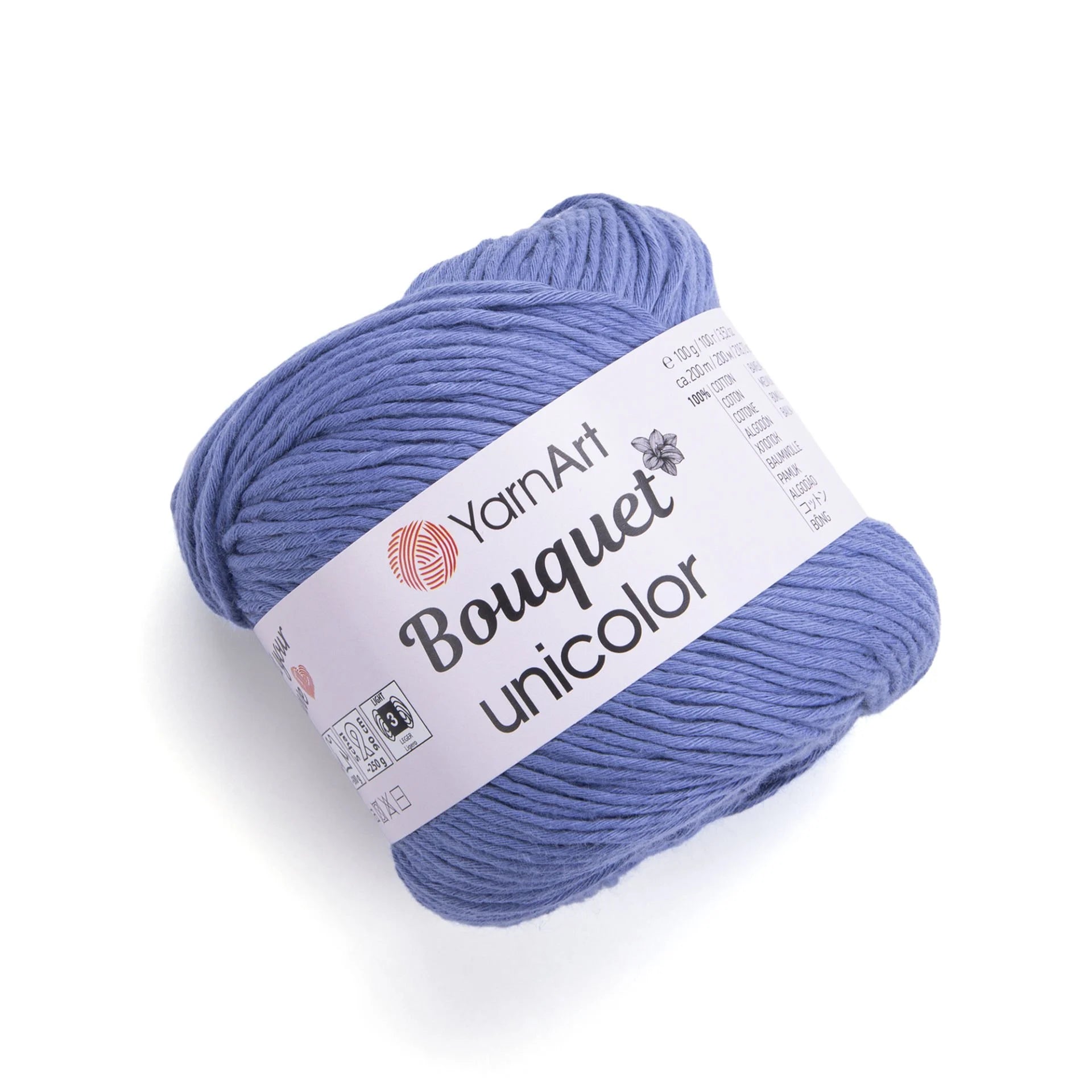 YarnArt Bouquet Unicolor is a soft, lightweight yarn made from 100% cotton, offering a smooth texture and vibrant, solid colors. Its generous 200-meter length per 100-gram skein ensures you have ample material for your projects.