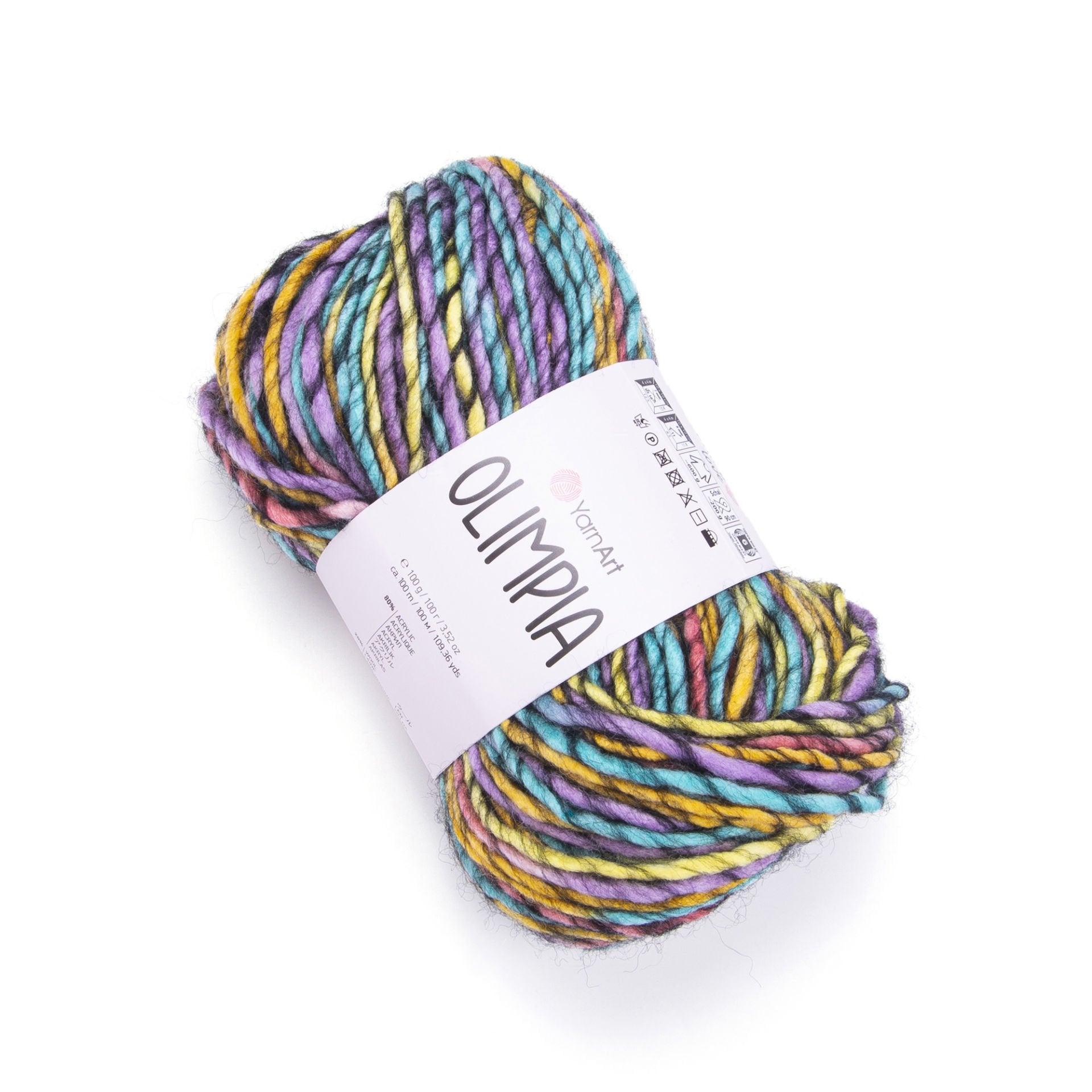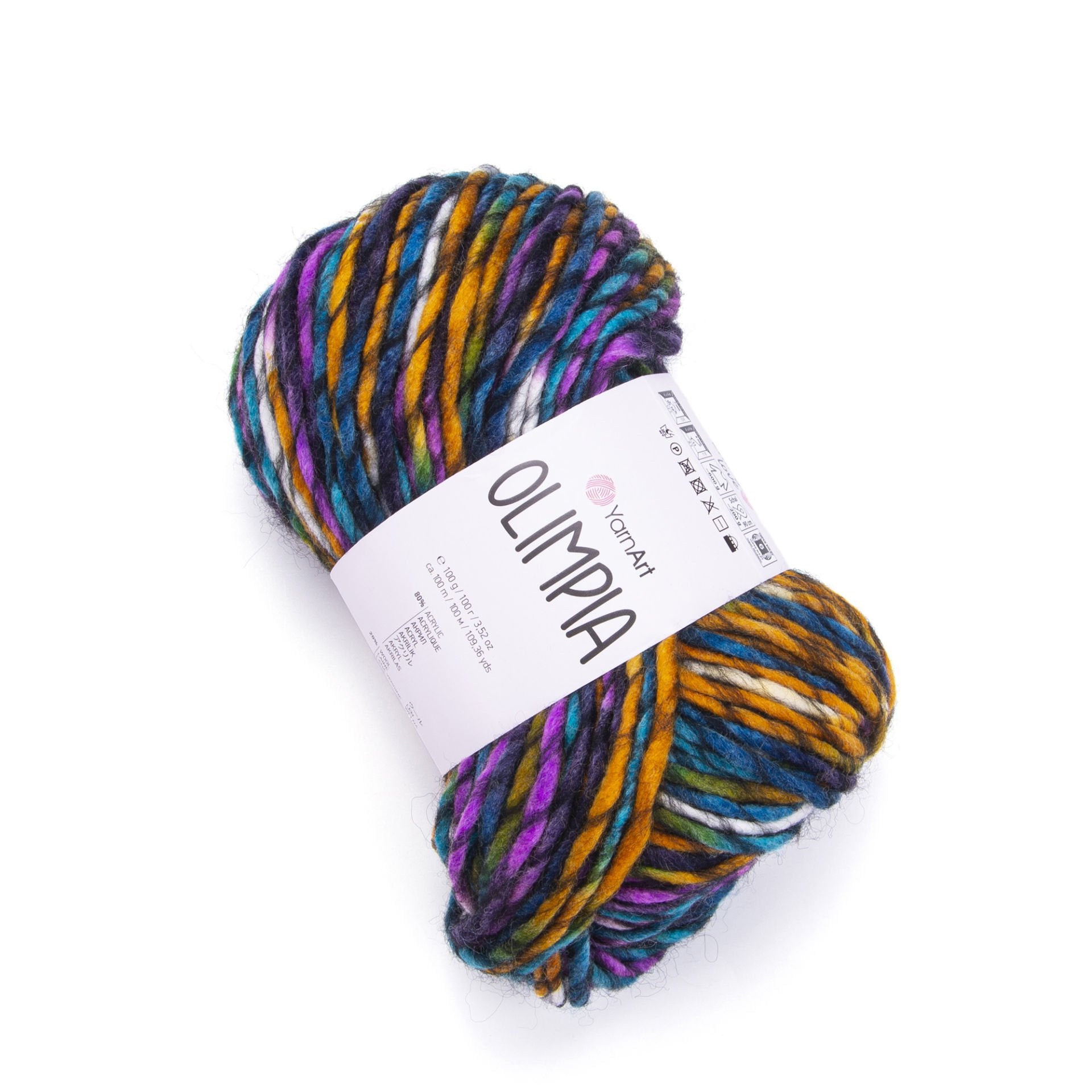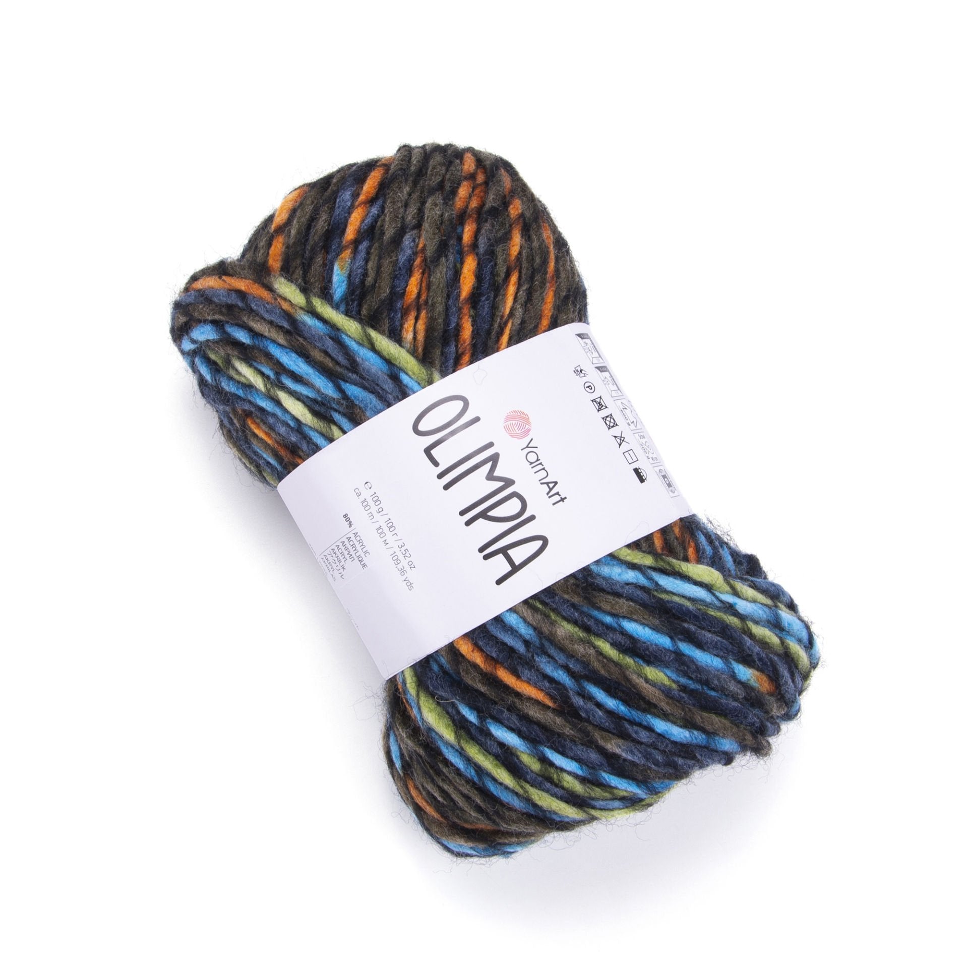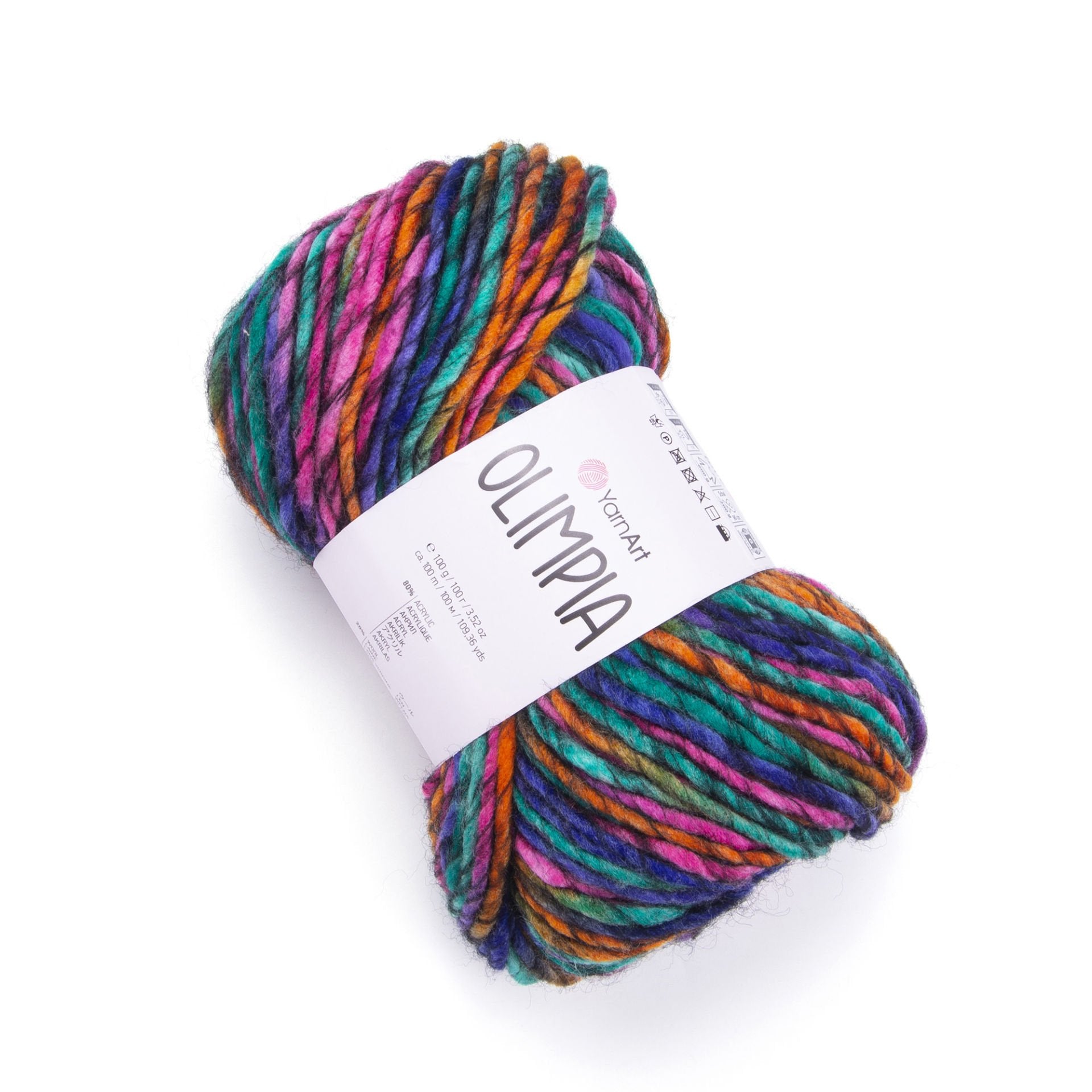 YarnArt Olimpía Multicolor is a vibrant super bulky acrylic-wool blend yarn, ideal for warm winter garments, scarves, and cozy home décor projects.