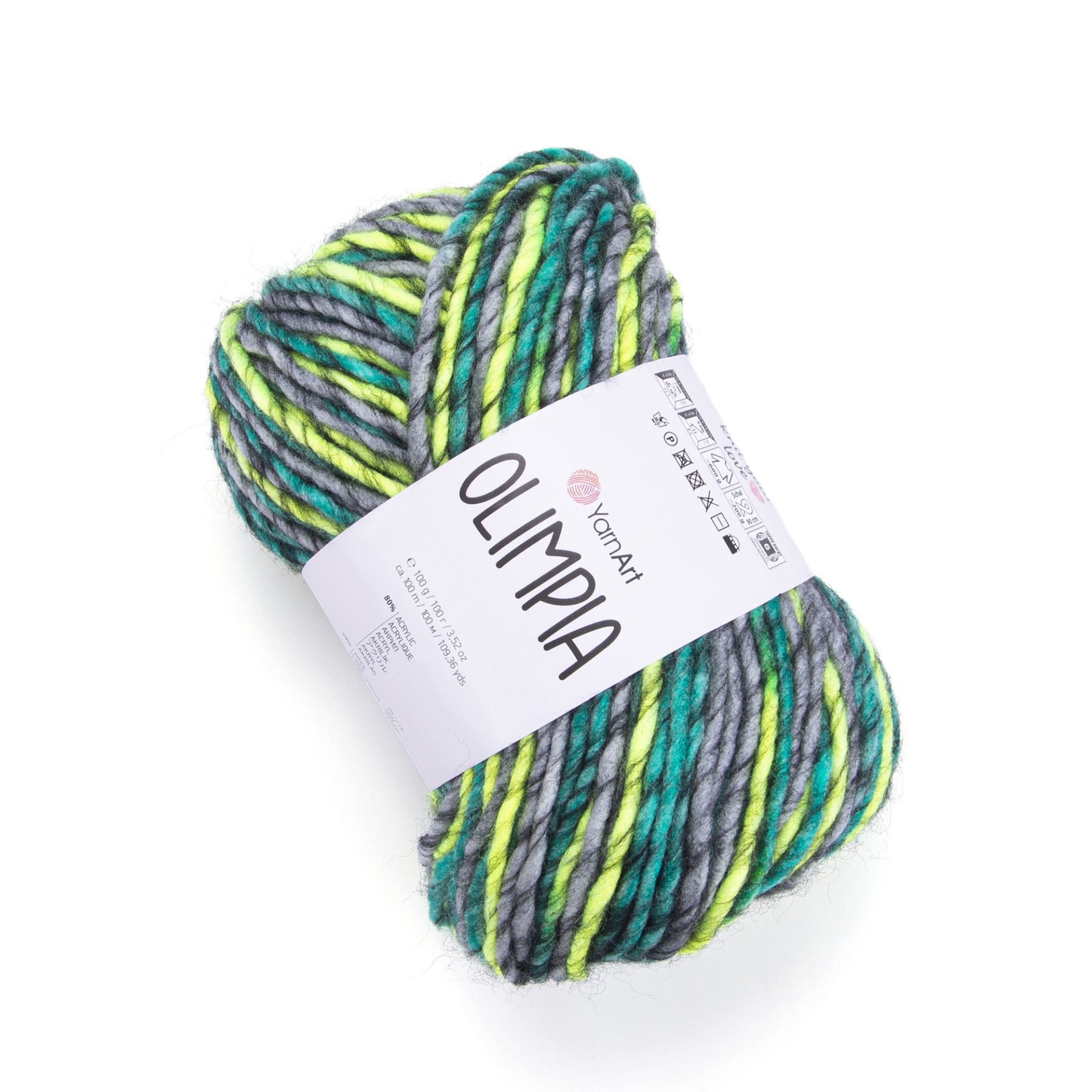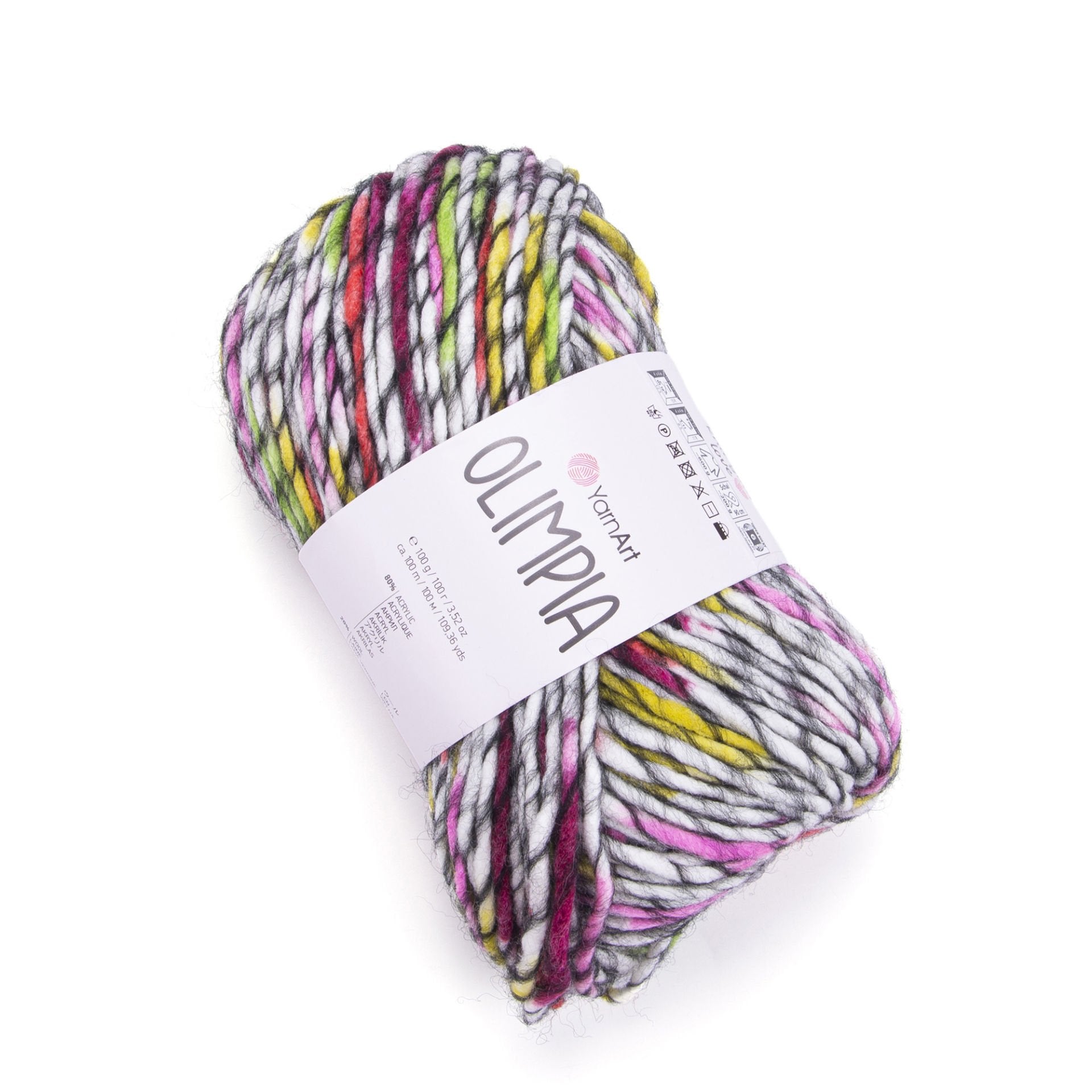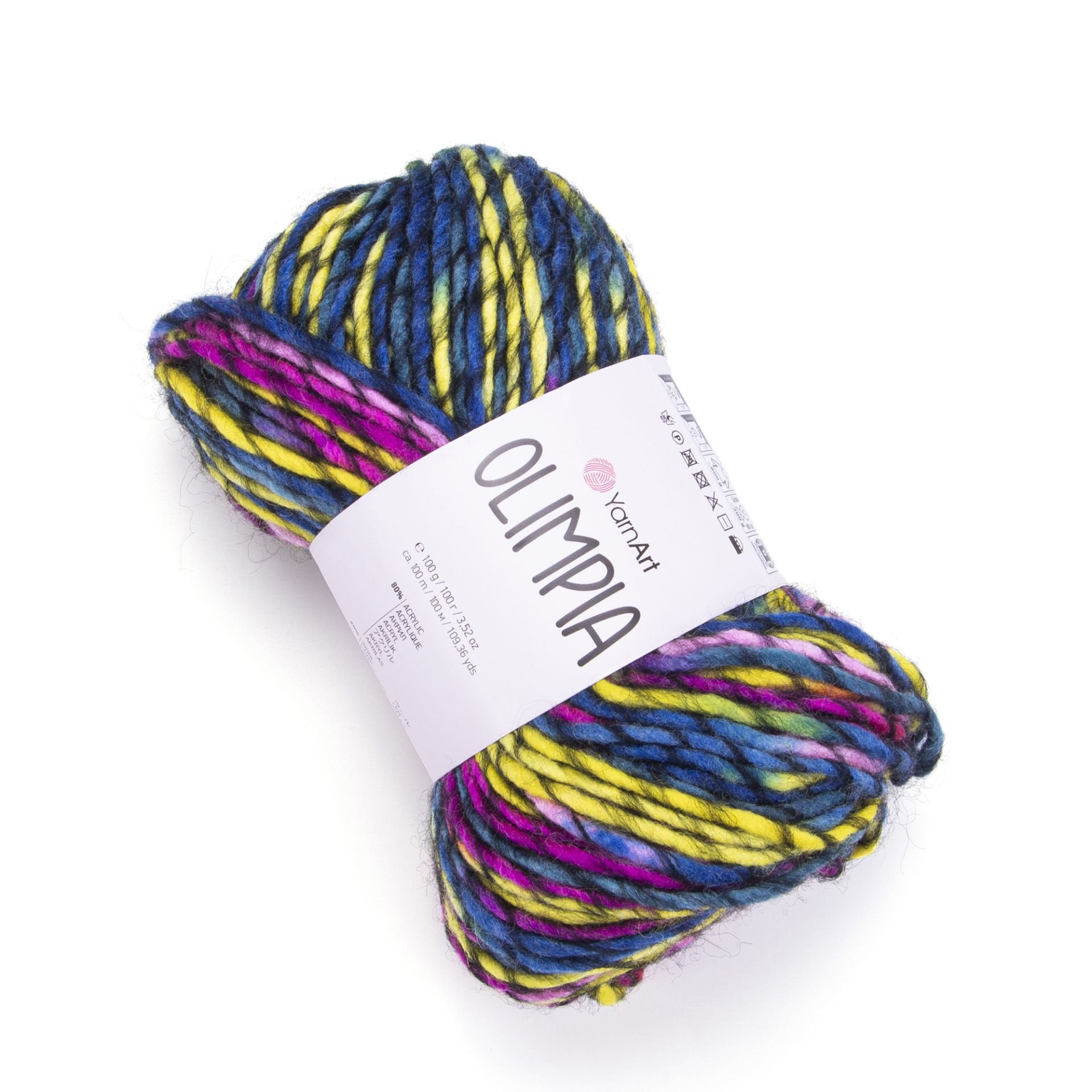 YarnArt Olimpía Multicolor is a vibrant super bulky acrylic-wool blend yarn, ideal for warm winter garments, scarves, and cozy home décor projects.
