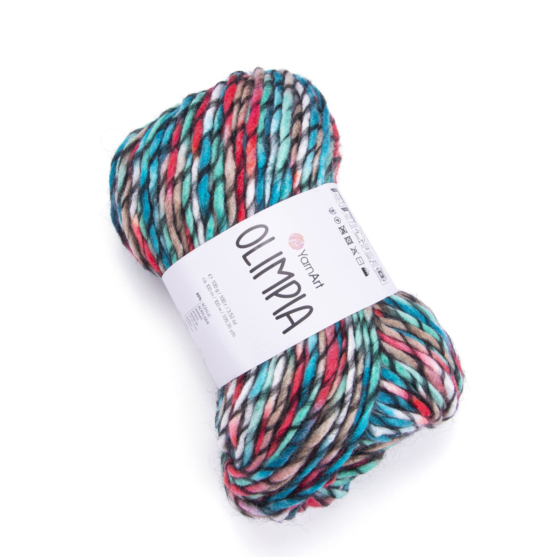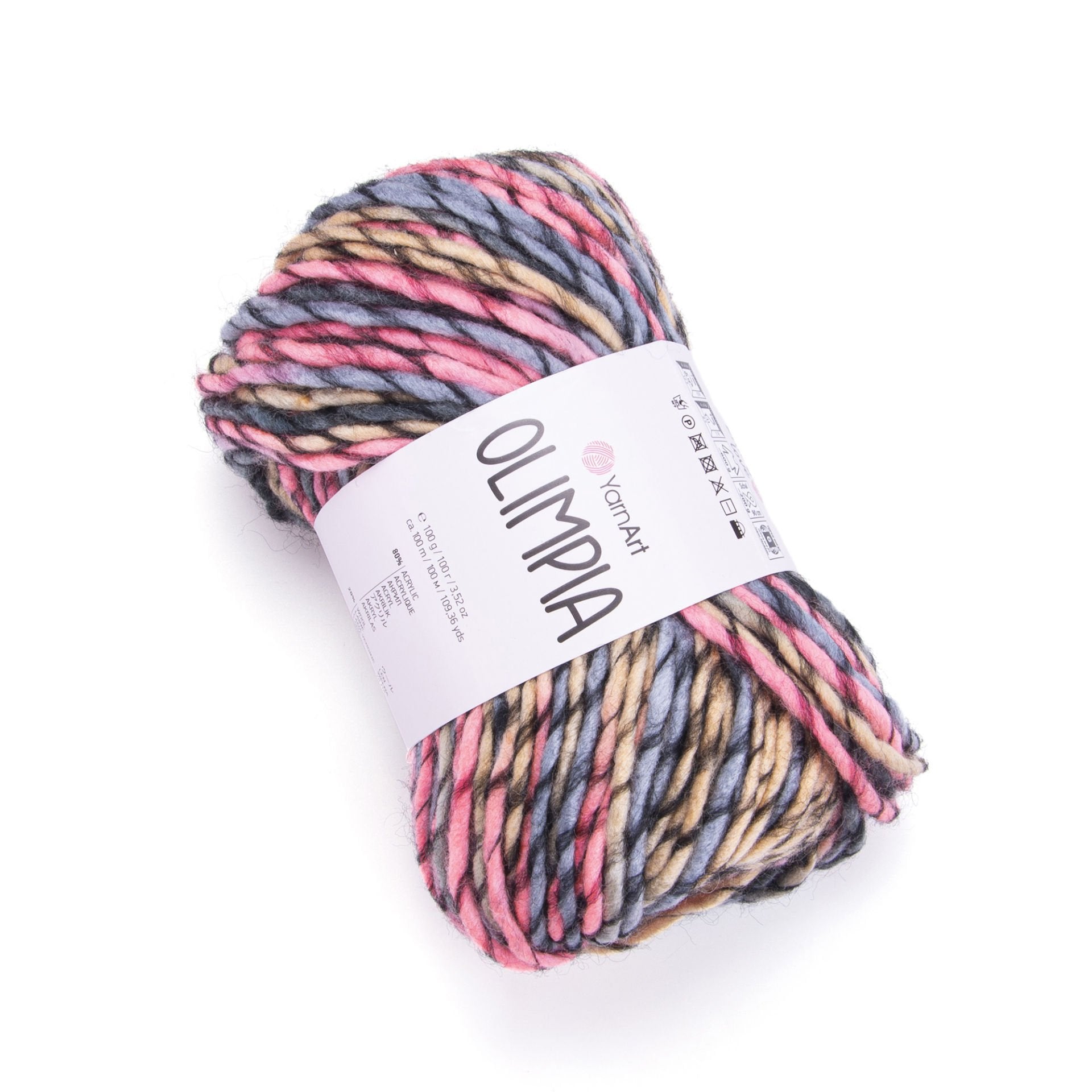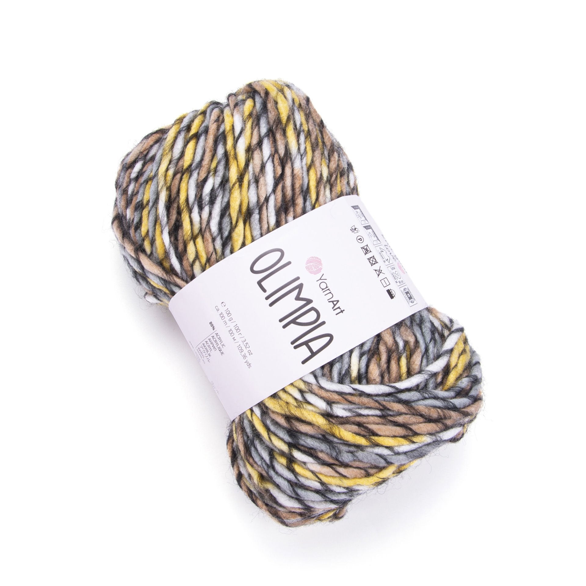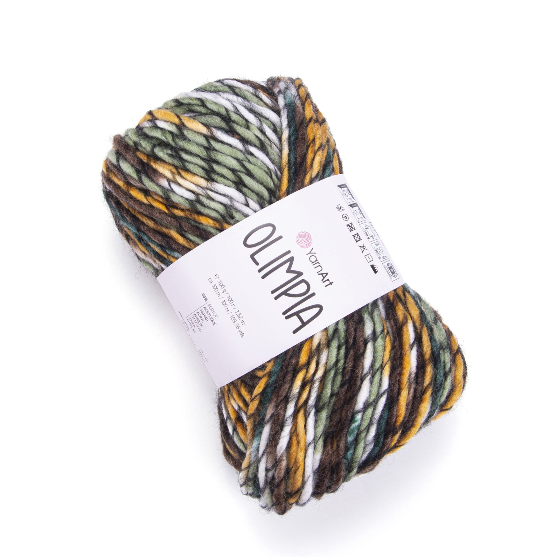 YarnArt Olimpía Multicolor is a vibrant super bulky acrylic-wool blend yarn, ideal for warm winter garments, scarves, and cozy home décor projects.