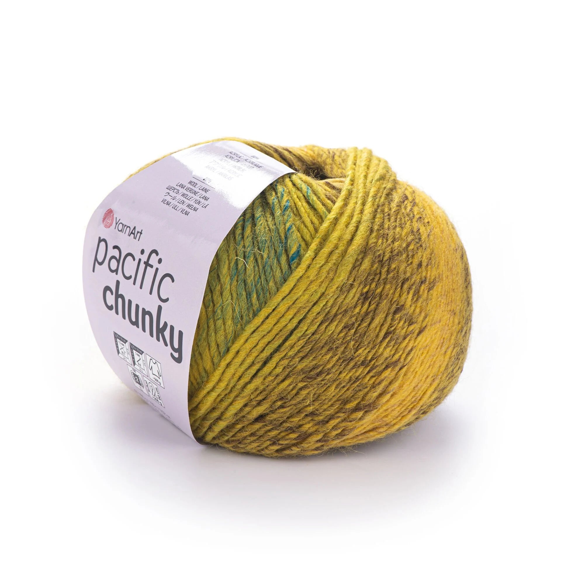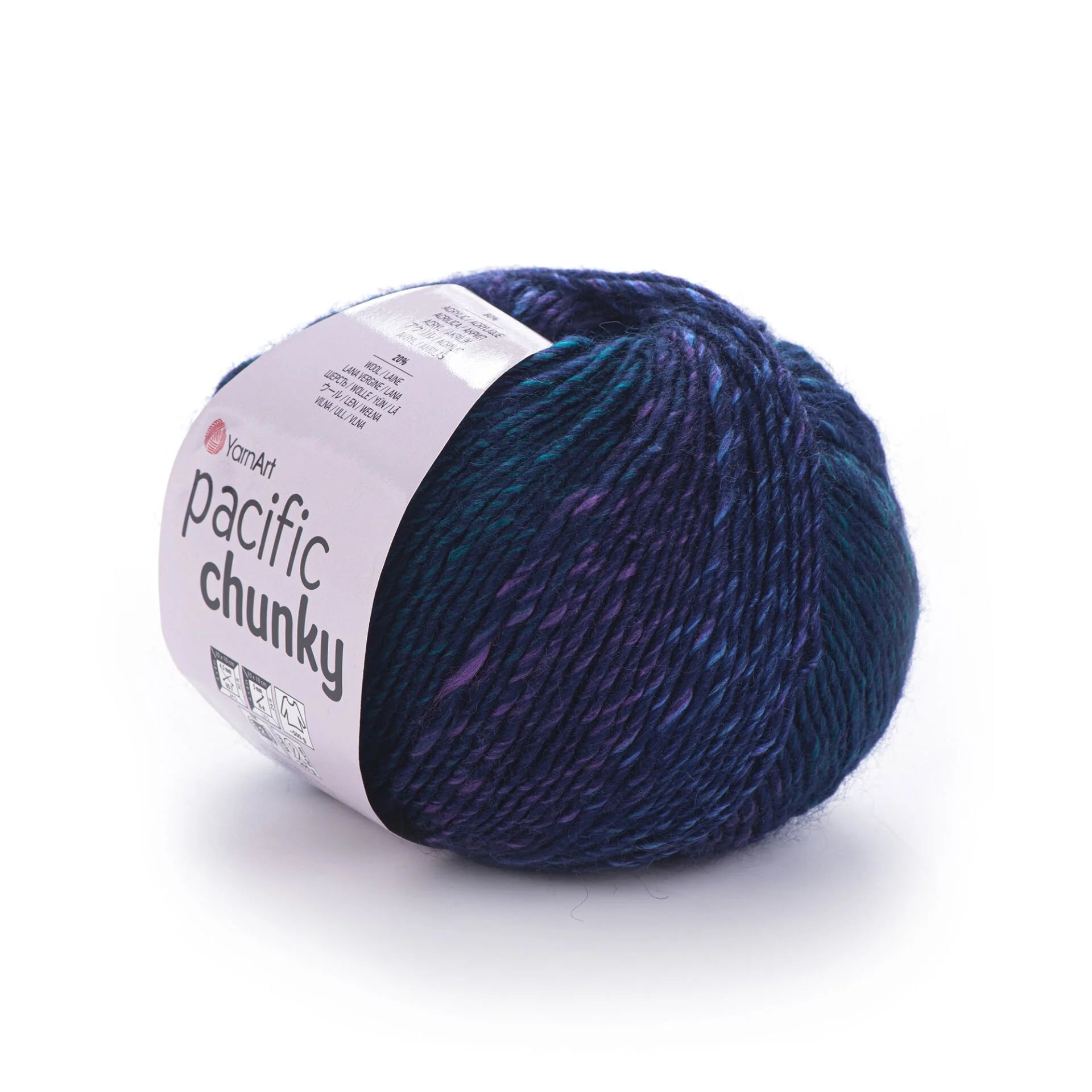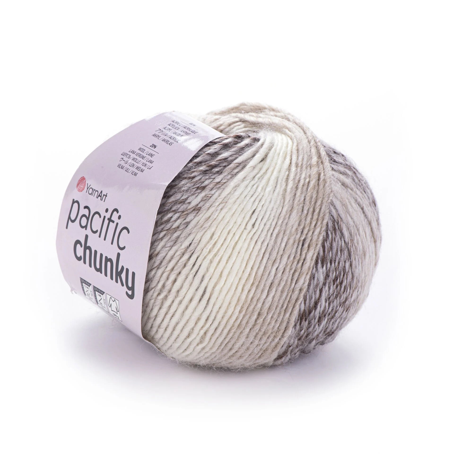 YarnArt Pacific Chunky Ebruli is a plush, bulky yarn (20% wool, 80% acrylic) with pre-striping ebruli coloring. With 200 m in each 100 g skein, it's perfect for quickly knitted or crocheted fall and winter essentials—such as sweaters, scarves, and hats—offering warmth, softness, and beautiful, built-in color variations.