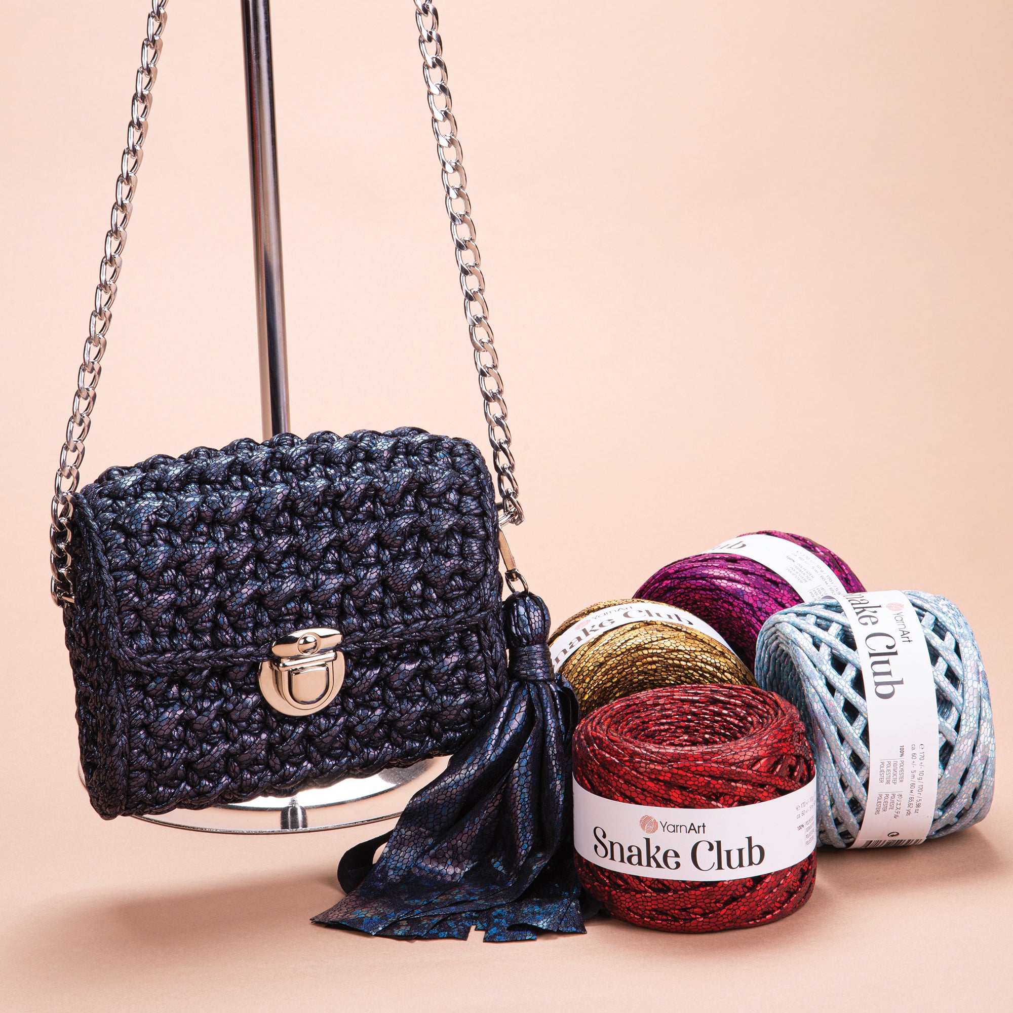 YarnArt Snake Club is a luxurious yarn made from high-quality polyester fabric, designed with a sleek, snake-skin-like texture. Its shiny yet soft surface adds a sophisticated edge to all your handmade projects.