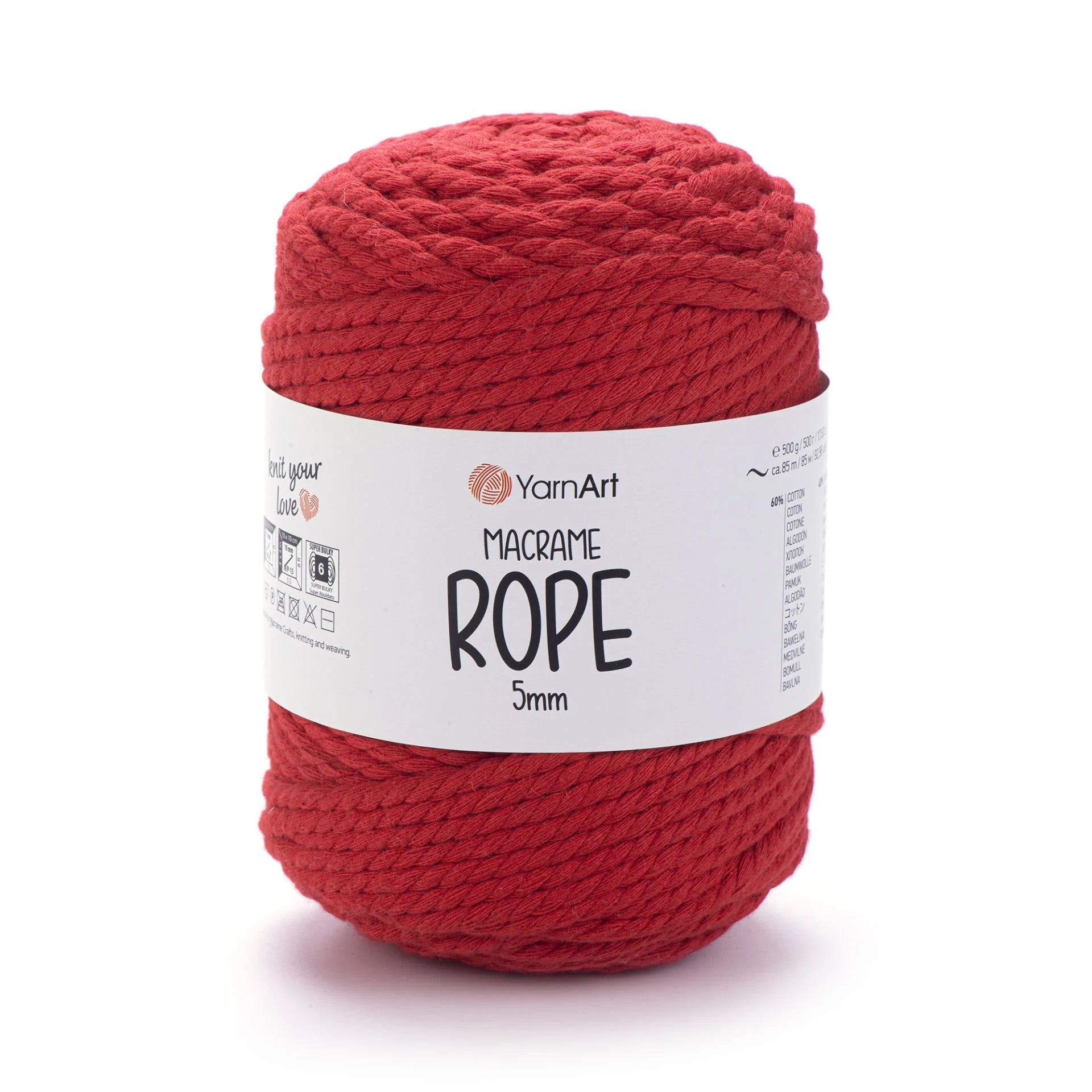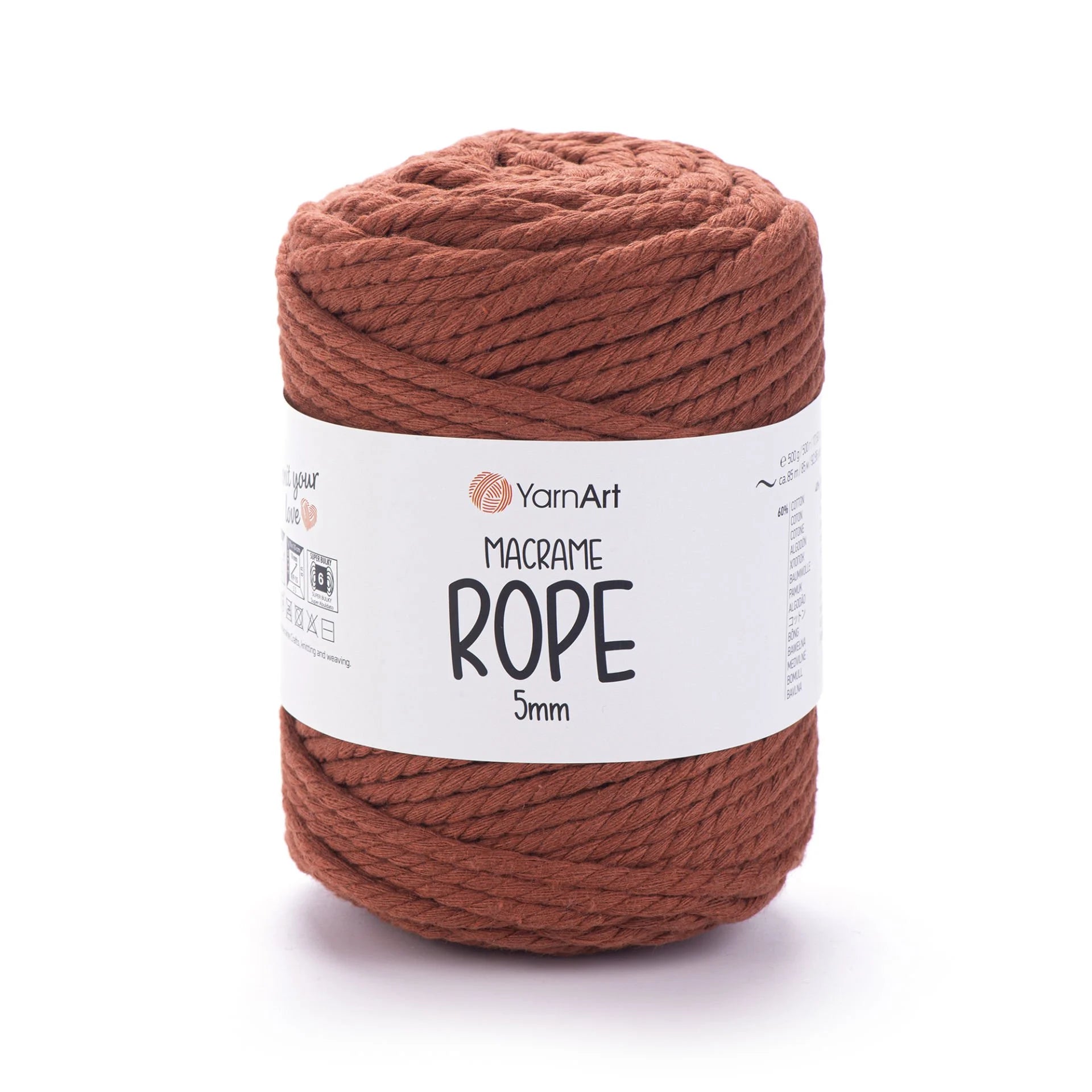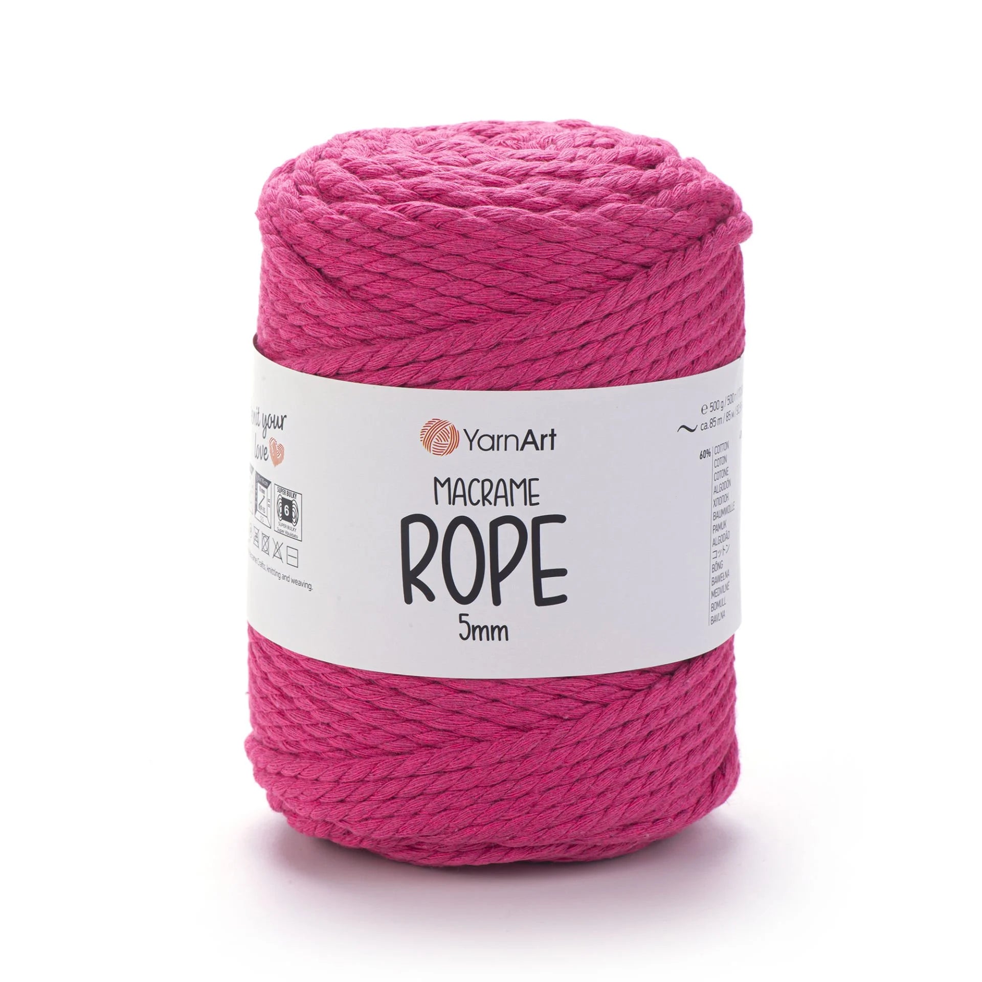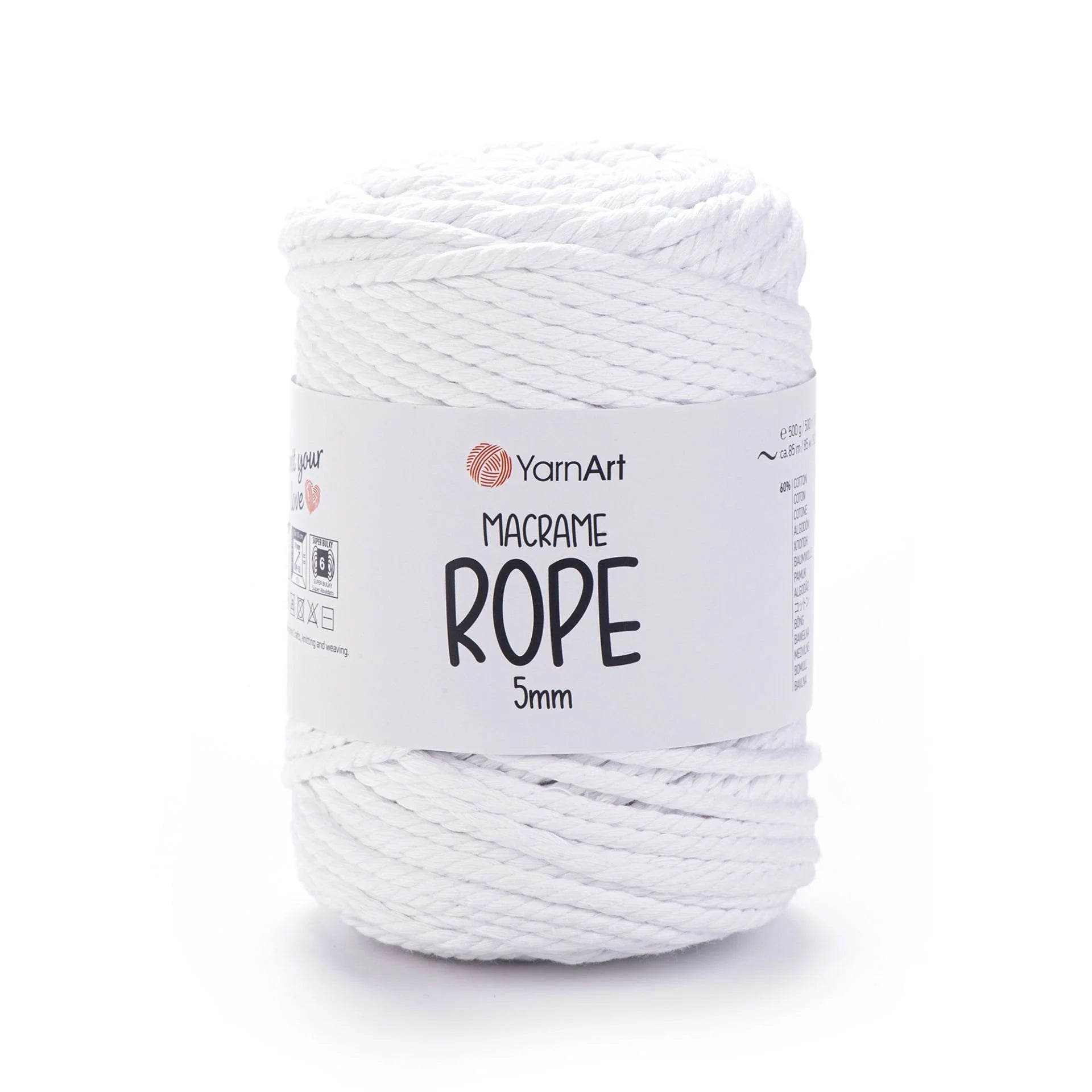 YarnArt Macrame Rope 5 mm is a robust, super bulky-weight cord crafted from a 60 % cotton and 40 % viscose-polyester blend. With its thick and durable texture, it’s perfect for a wide range of projects like macramé wall hangings, plant hangers, rugs, baskets, cushions, and more. The soft yet sturdy structure ensures beautiful results and quick progress. Ideal for crafters looking for both style and function in their homemade creations.