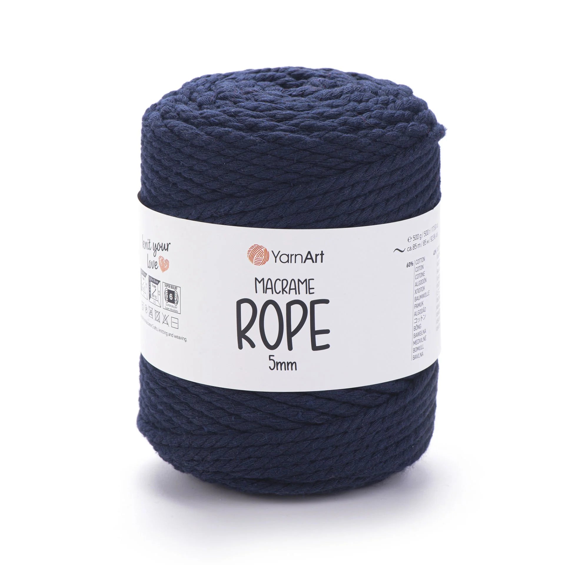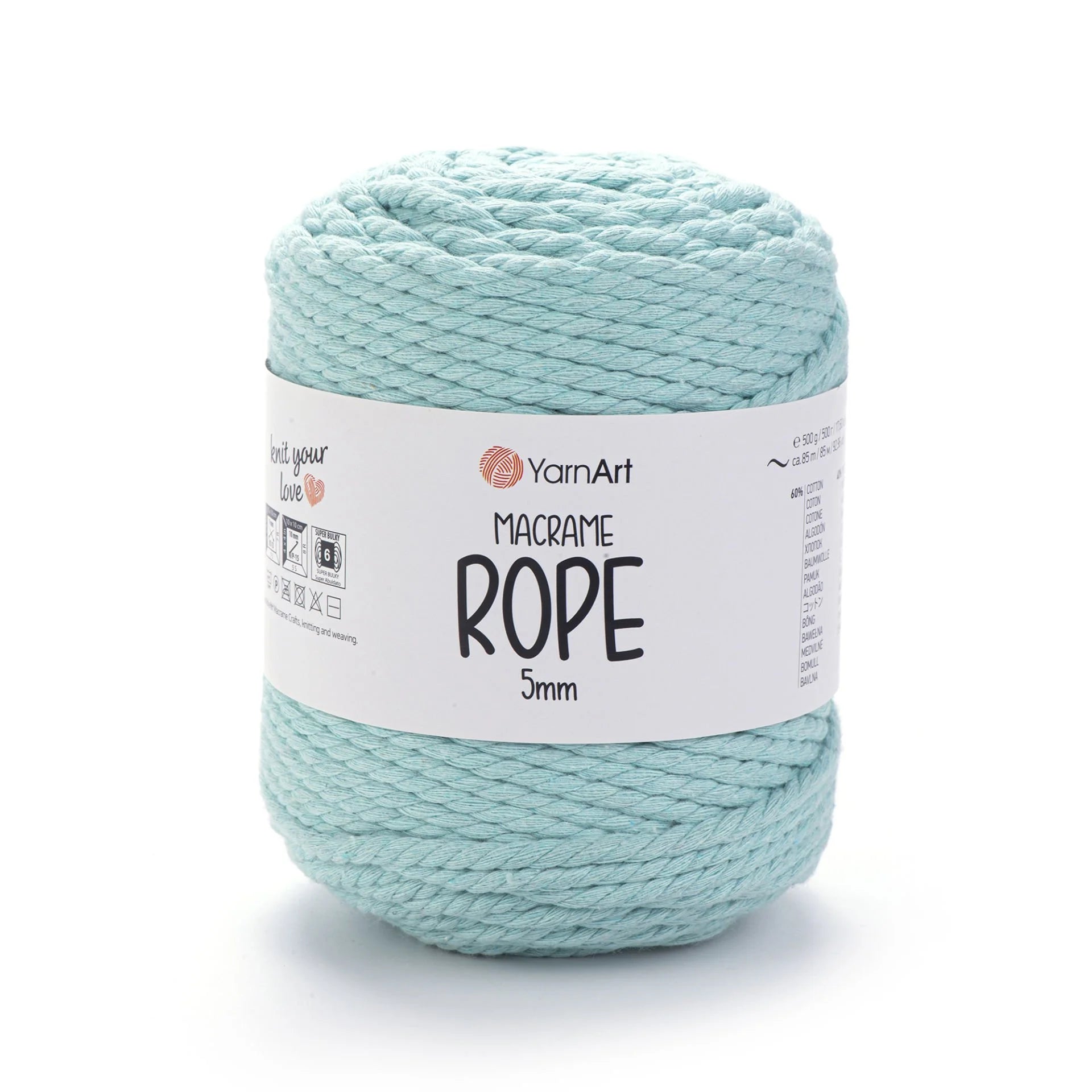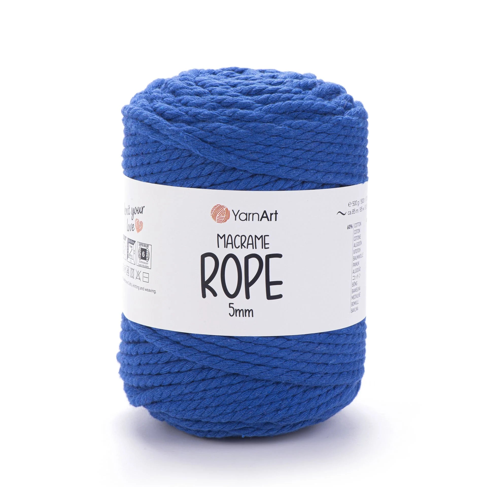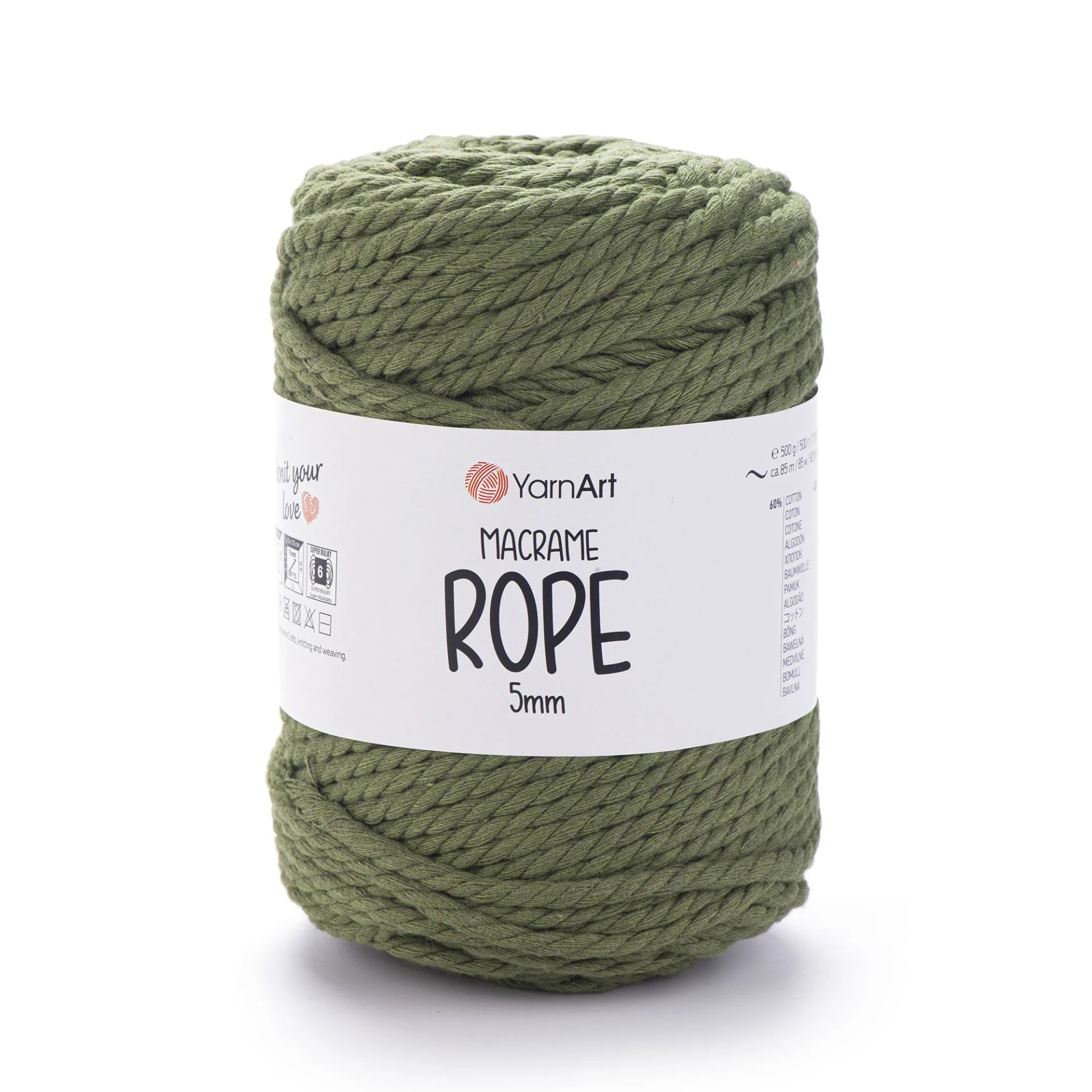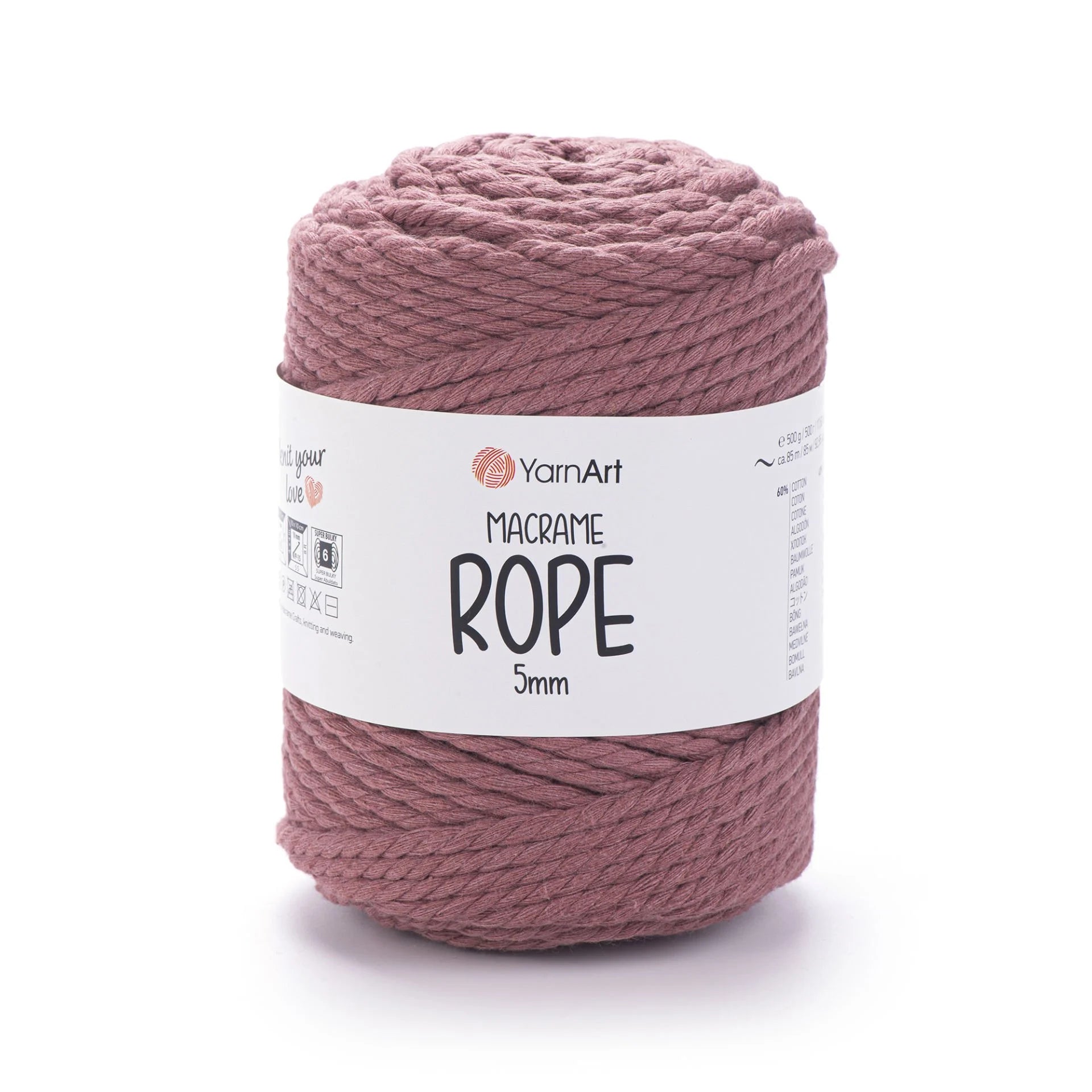 YarnArt Macrame Rope 5 mm is a robust, super bulky-weight cord crafted from a 60 % cotton and 40 % viscose-polyester blend. With its thick and durable texture, it’s perfect for a wide range of projects like macramé wall hangings, plant hangers, rugs, baskets, cushions, and more. The soft yet sturdy structure ensures beautiful results and quick progress. Ideal for crafters looking for both style and function in their homemade creations.