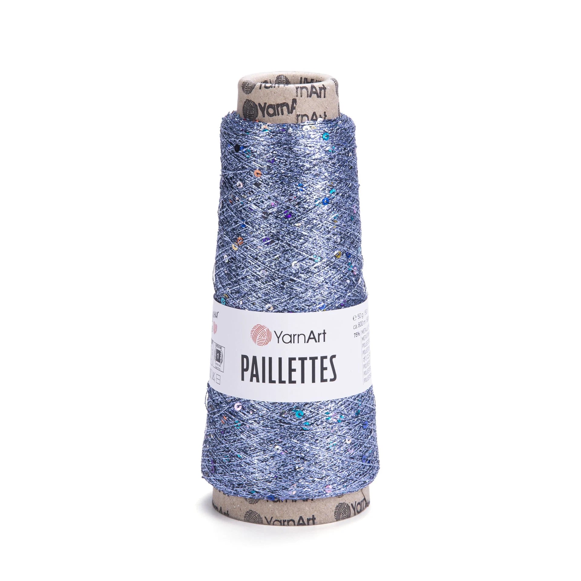 YarnArt Paillettes is a super fine metallic yarn featuring sequins spaced every 21 cm. Ideal for lace, shawls, evening wear, and festive décor projects needing subtle sparkle and elegance.