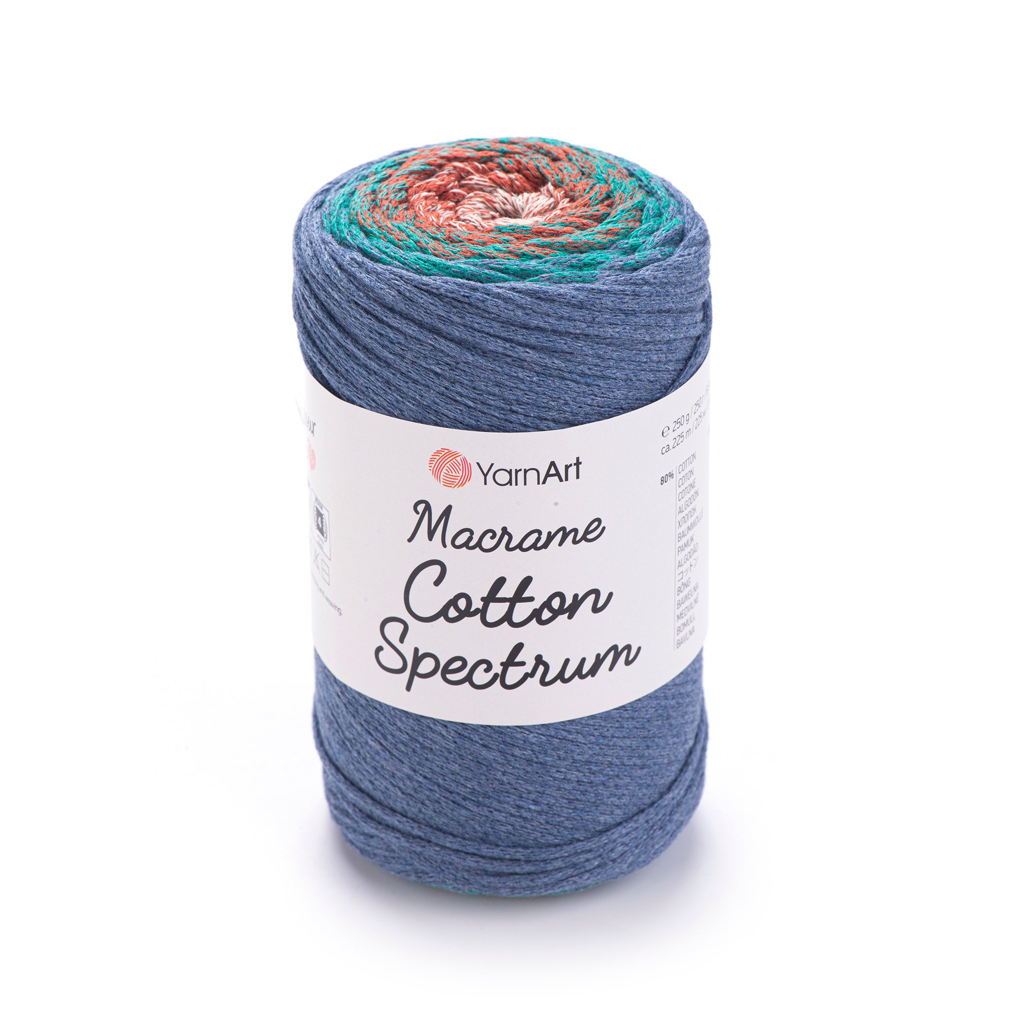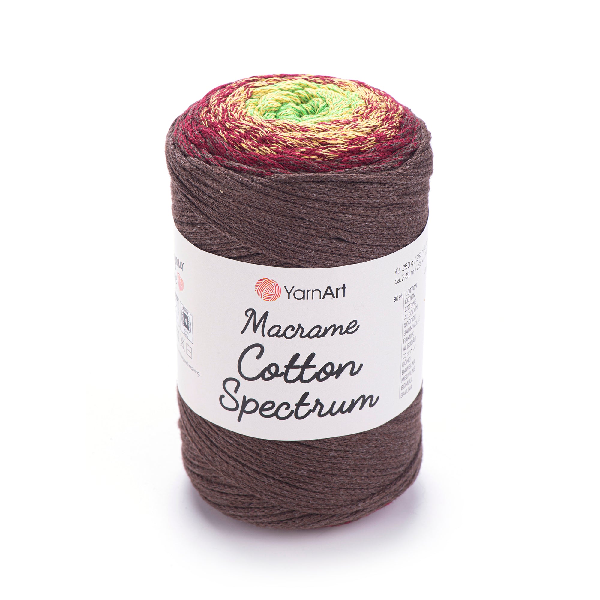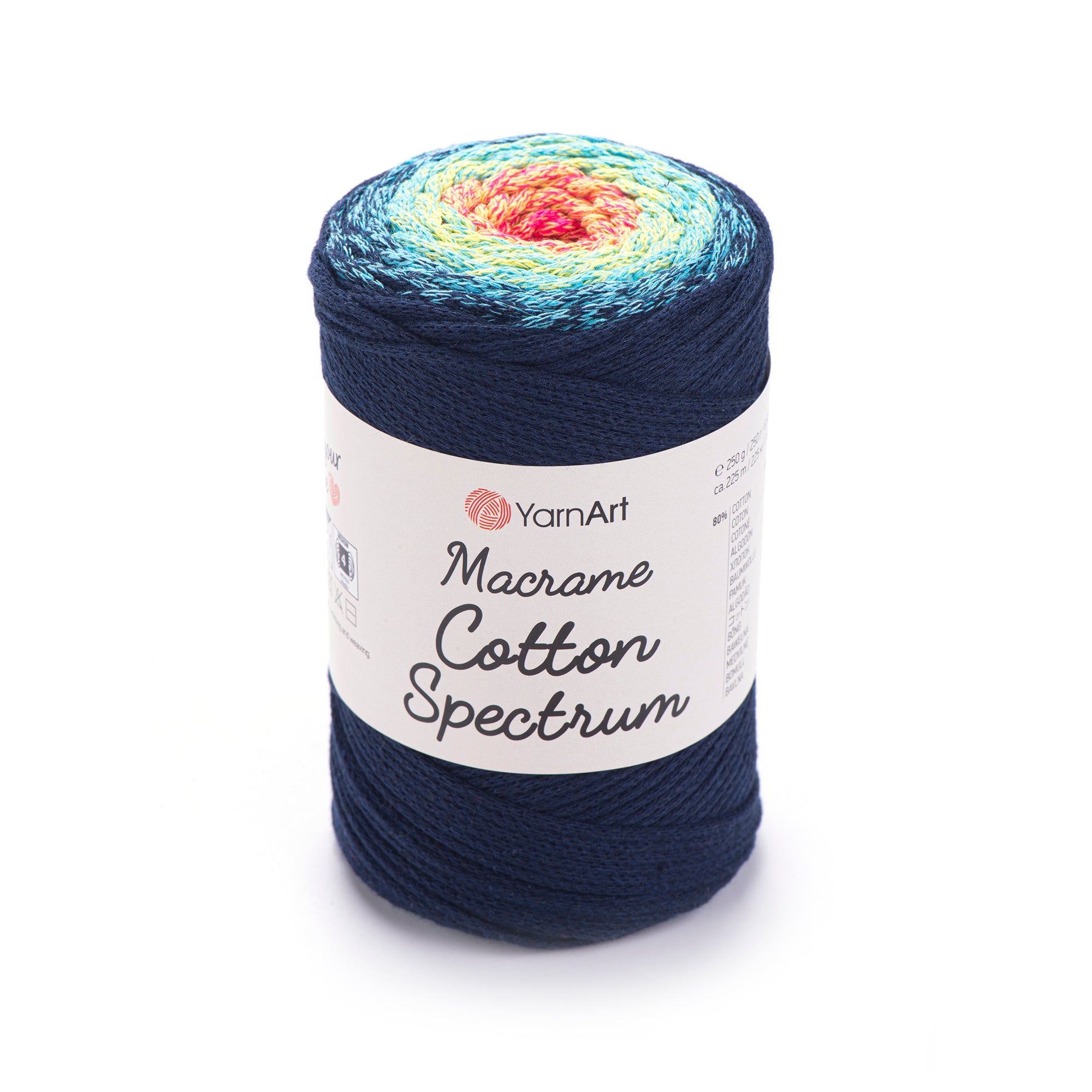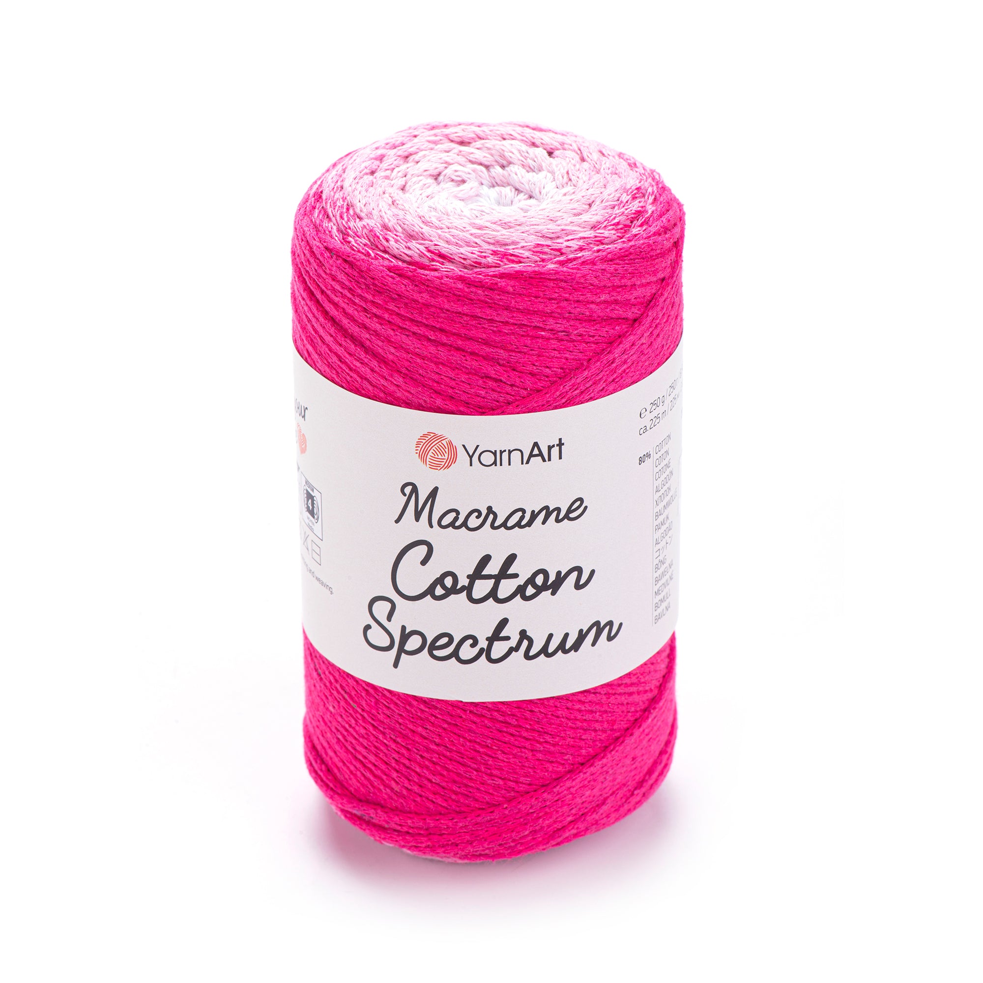 Add a pop of color to your macrame projects with YarnArt Macrame Cotton Spectrum! This unique yarn combines compatible colors in one ball, allowing for endless design possibilities. Use it for wall hangings, pillows, and more. Upgrade your summer style with this playful and versatile yarn.