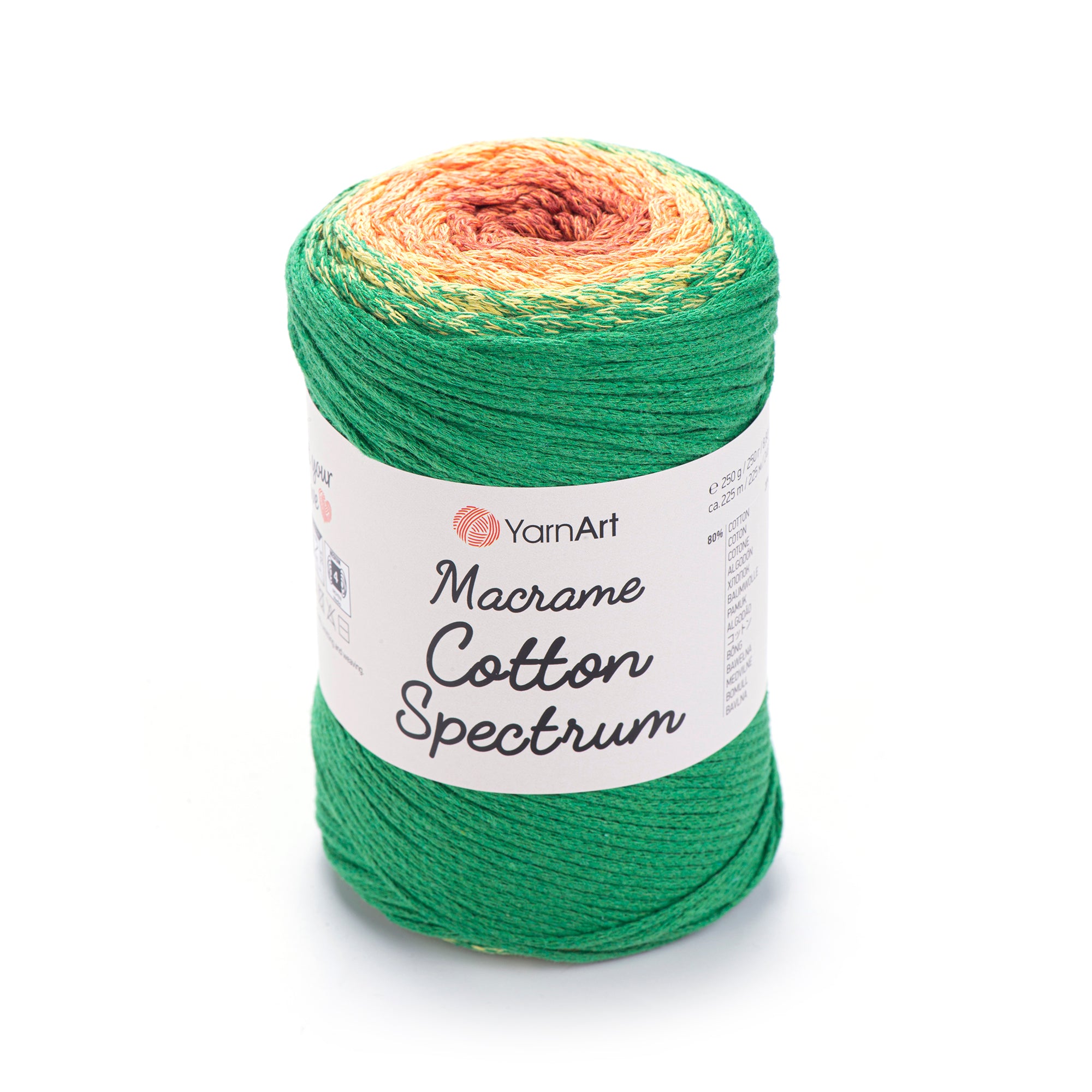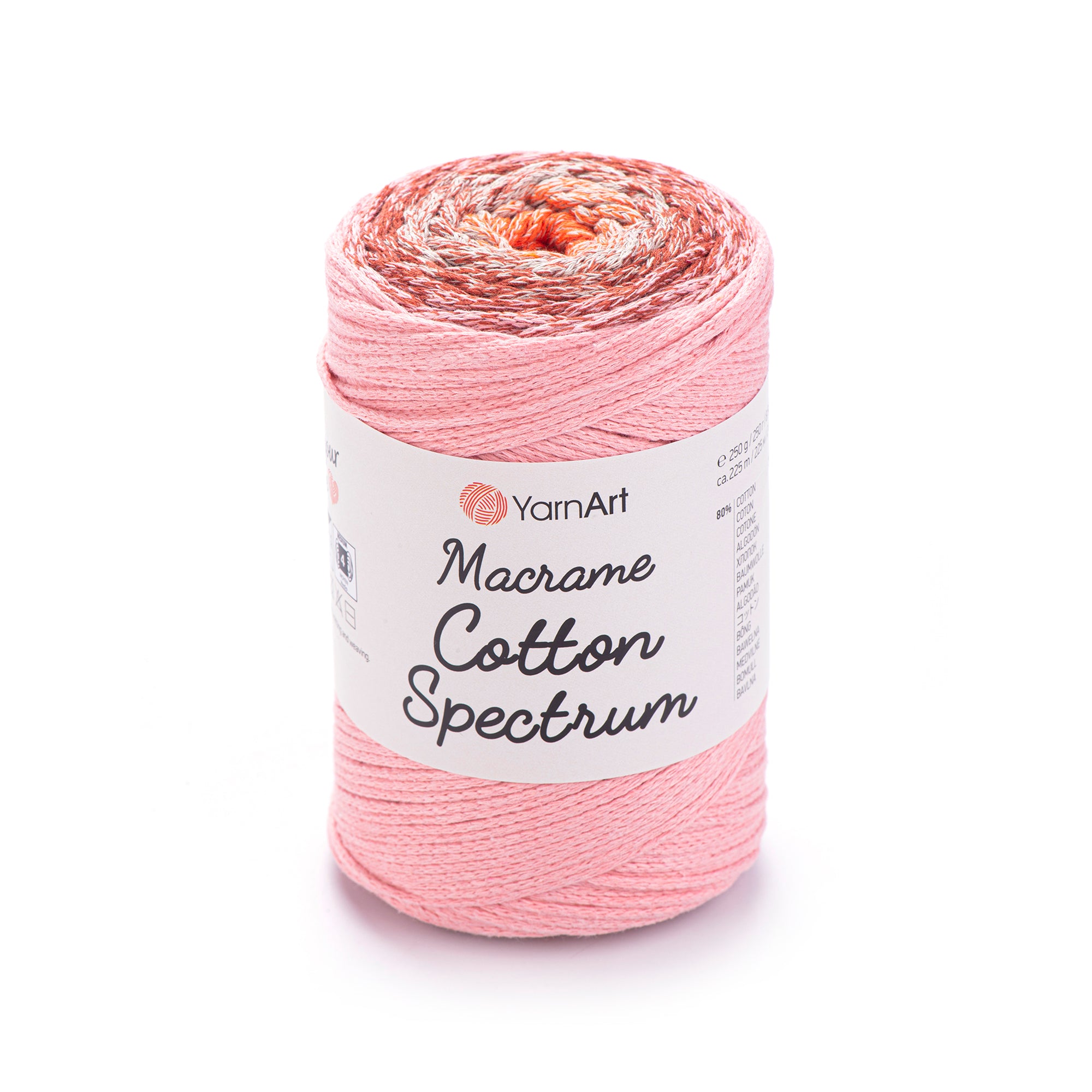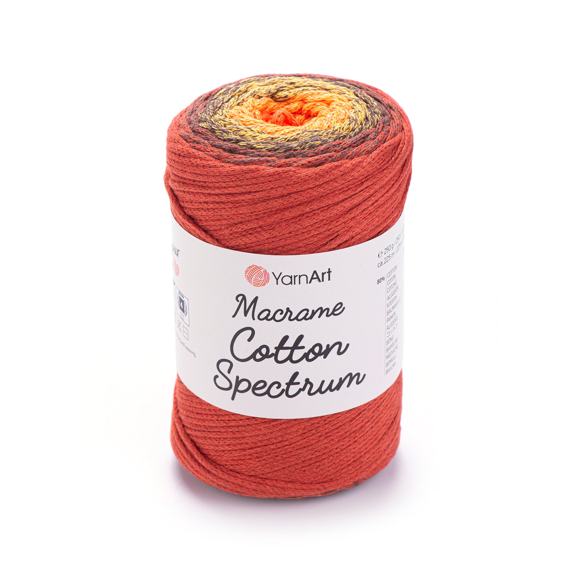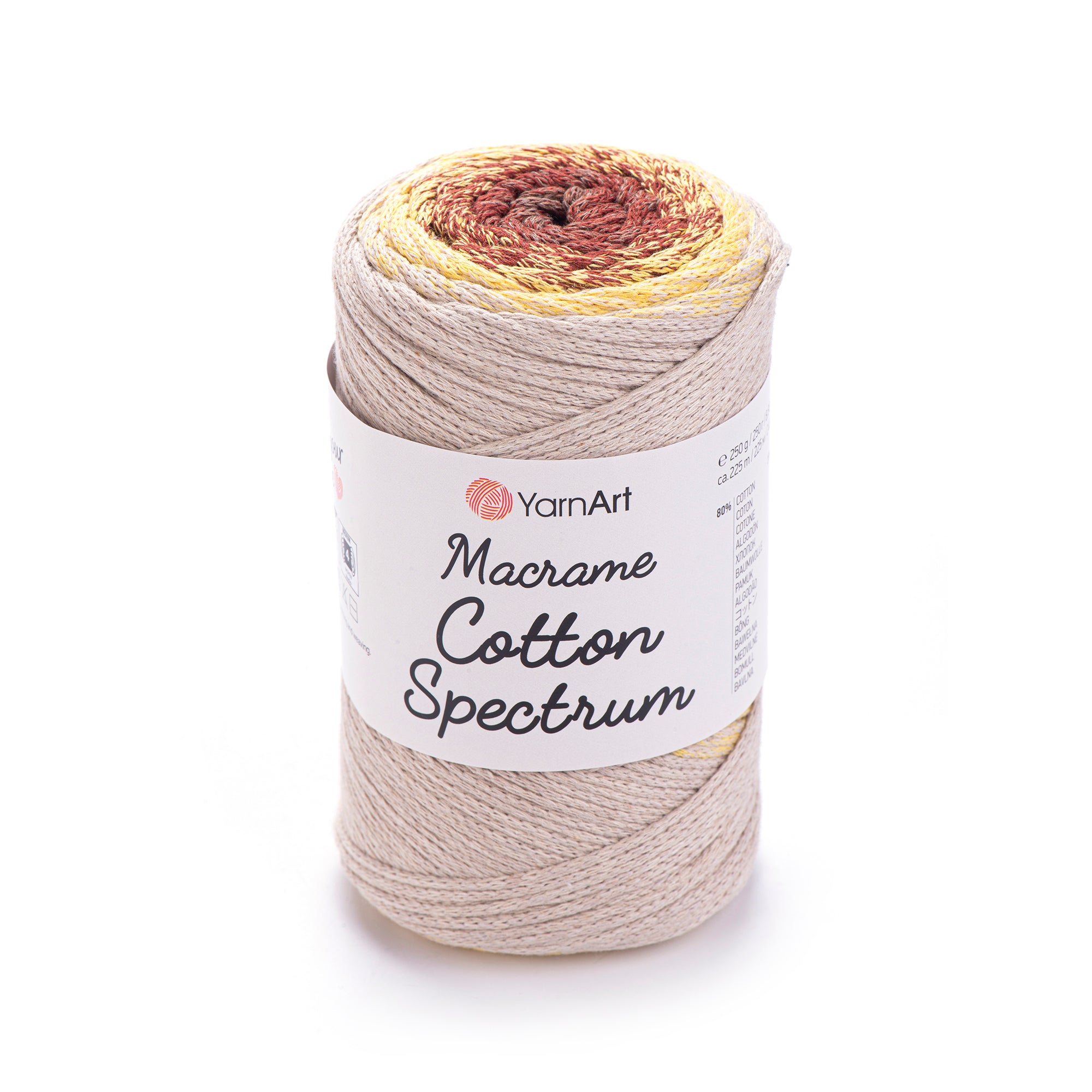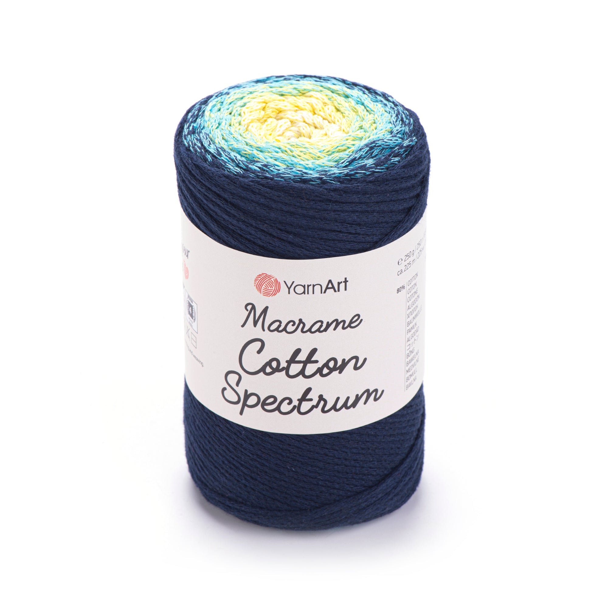 Add a pop of color to your macrame projects with YarnArt Macrame Cotton Spectrum! This unique yarn combines compatible colors in one ball, allowing for endless design possibilities. Use it for wall hangings, pillows, and more. Upgrade your summer style with this playful and versatile yarn.