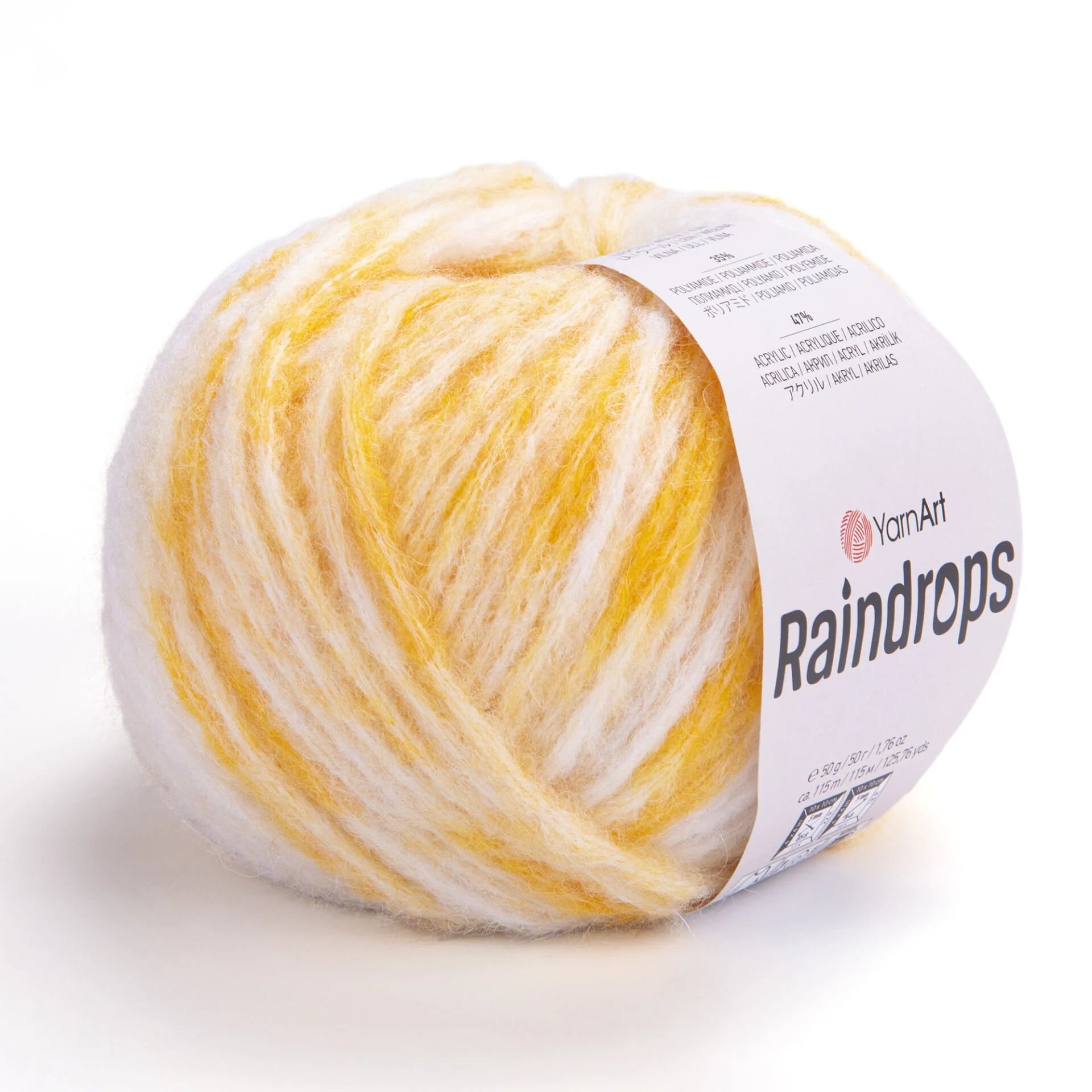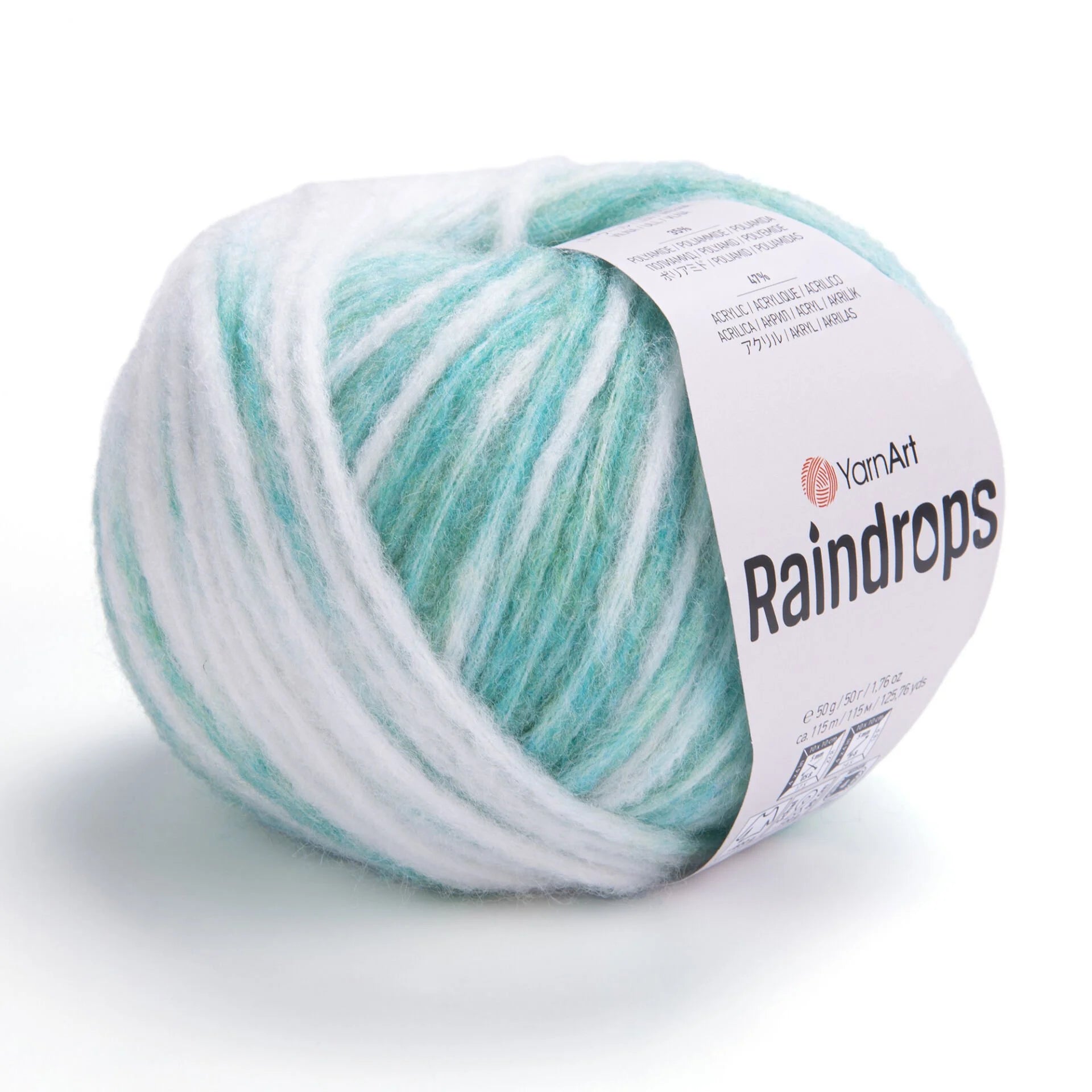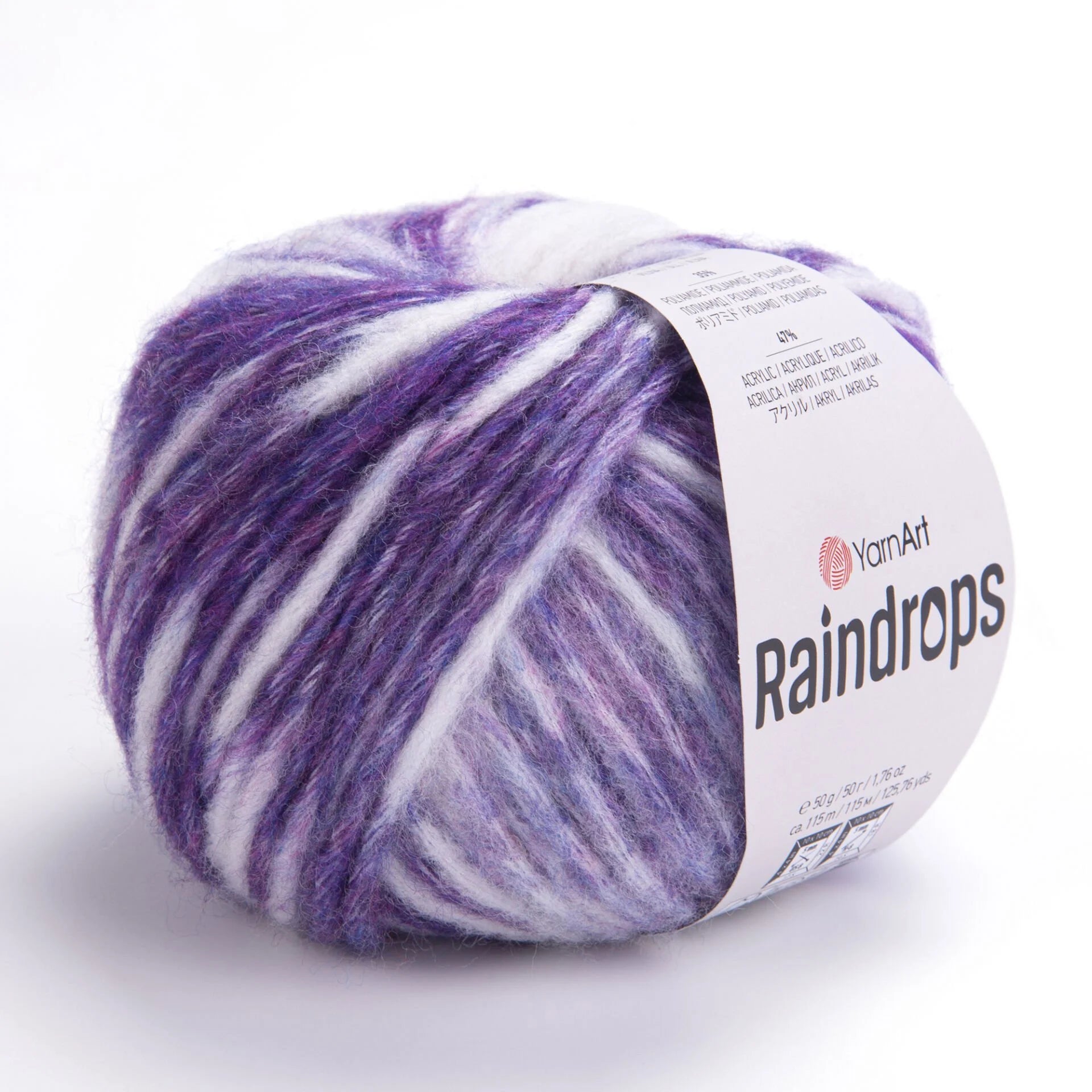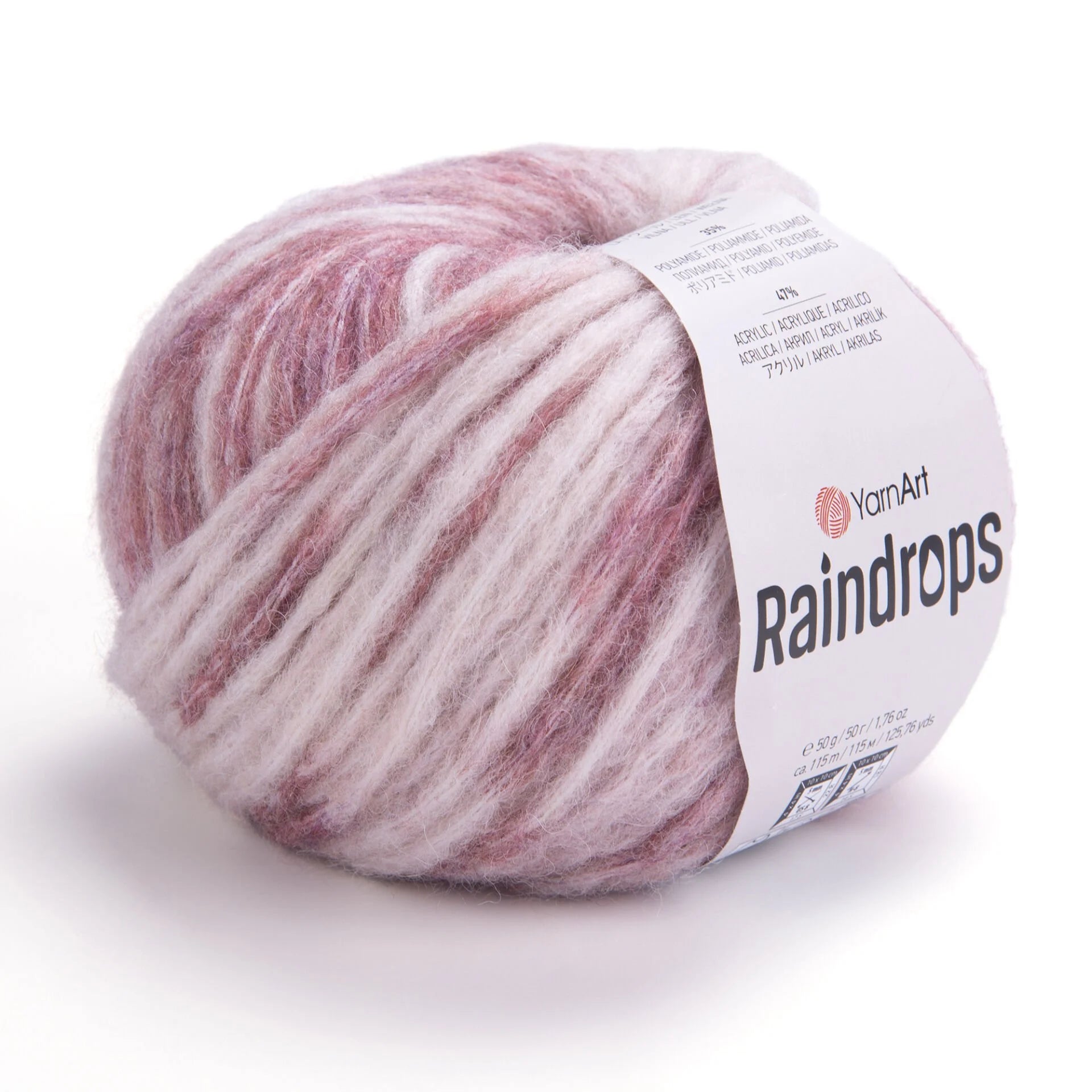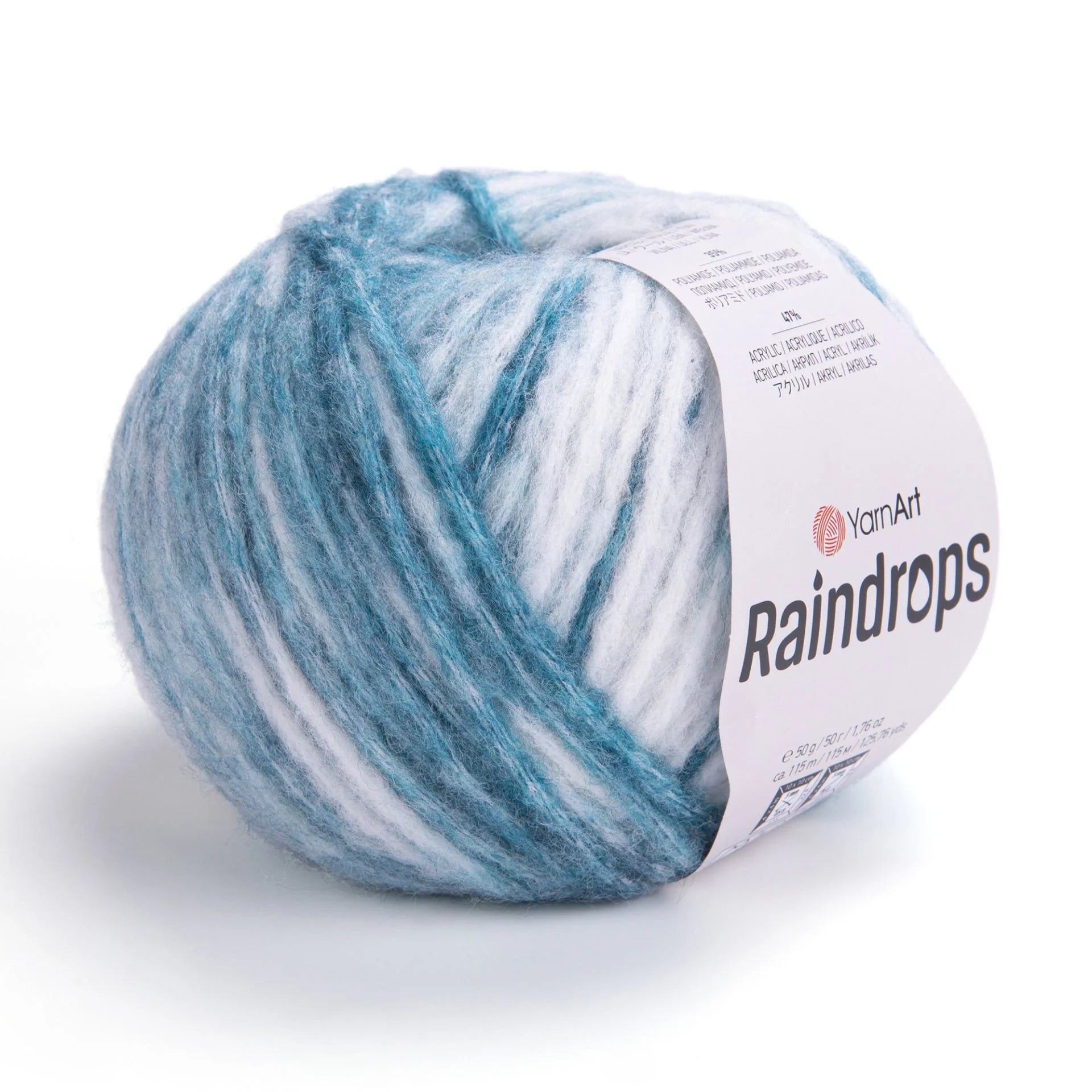 YarnArt Raindrops is a soft, fluffy yarn made from a blend of 18% wool, 35% polyamide, and 47% acrylic. Its medium thickness and melange colors create a three-dimensional effect, making it ideal for cozy winter garments and accessories.
