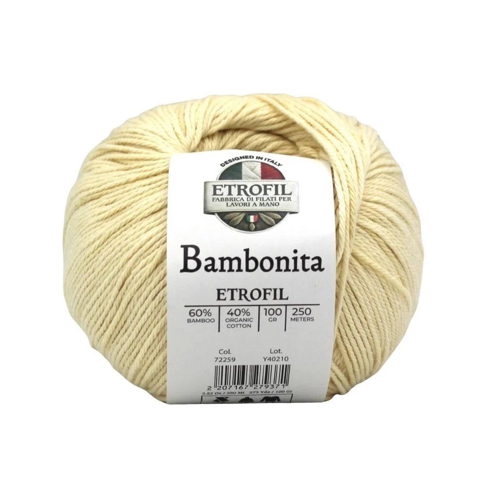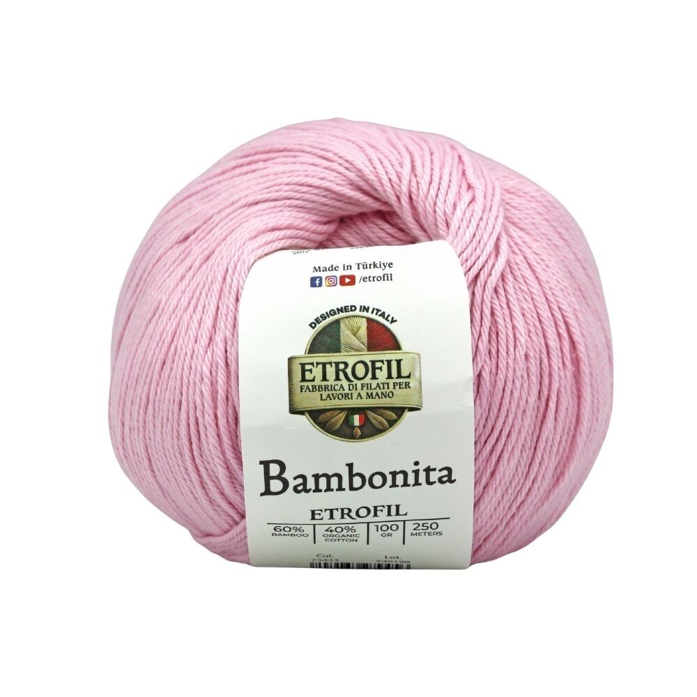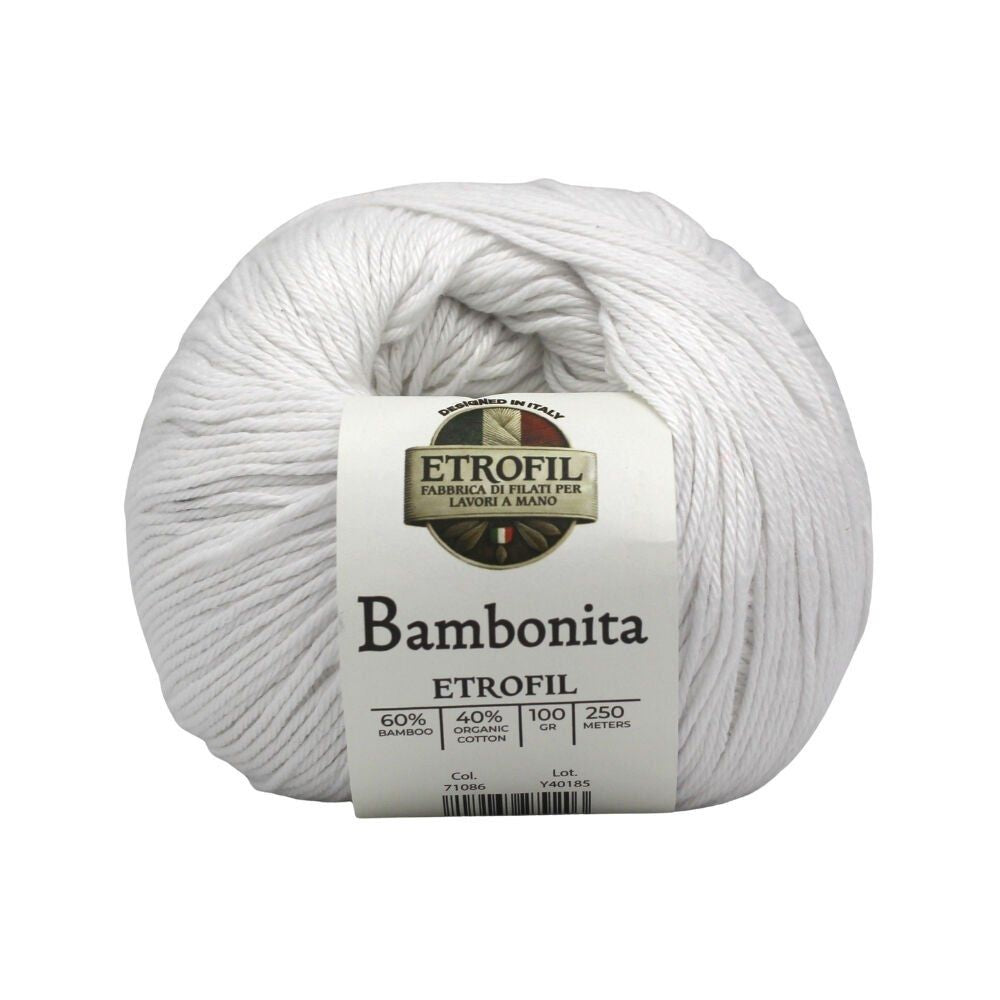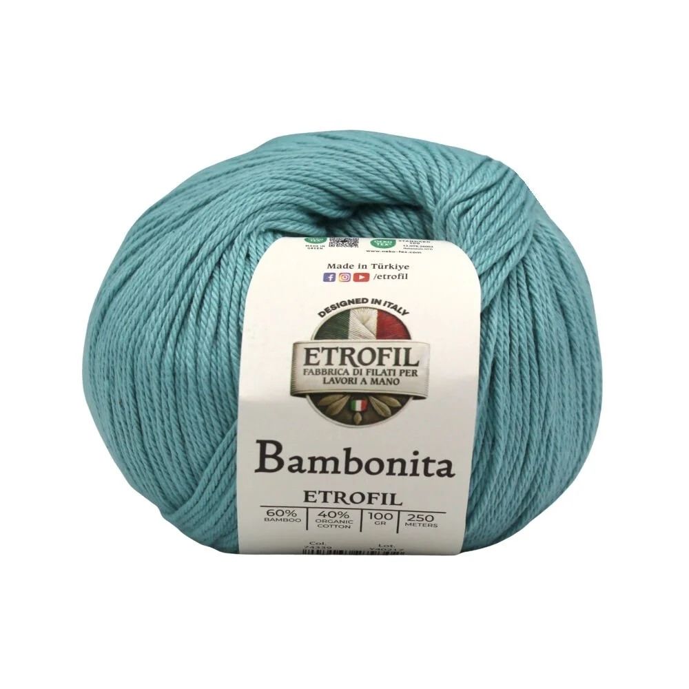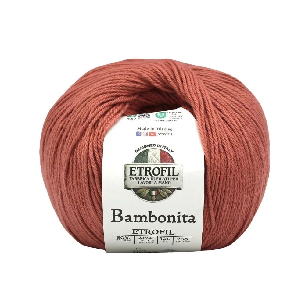 Etrofil Bambonita es un hilo ligero, transpirable y suave para la piel, elaborado con una mezcla natural de bambú y algodón orgánico. El bambú aporta brillo sedoso y frescura, mientras que el algodón ofrece comodidad y transpirabilidad.