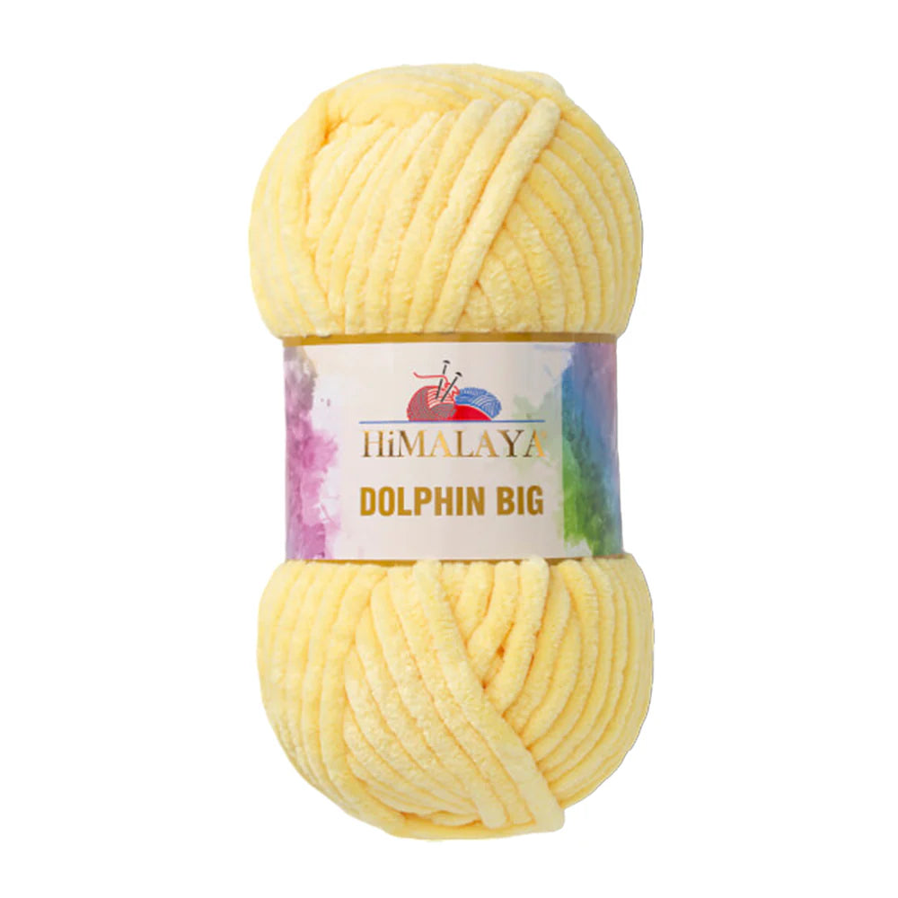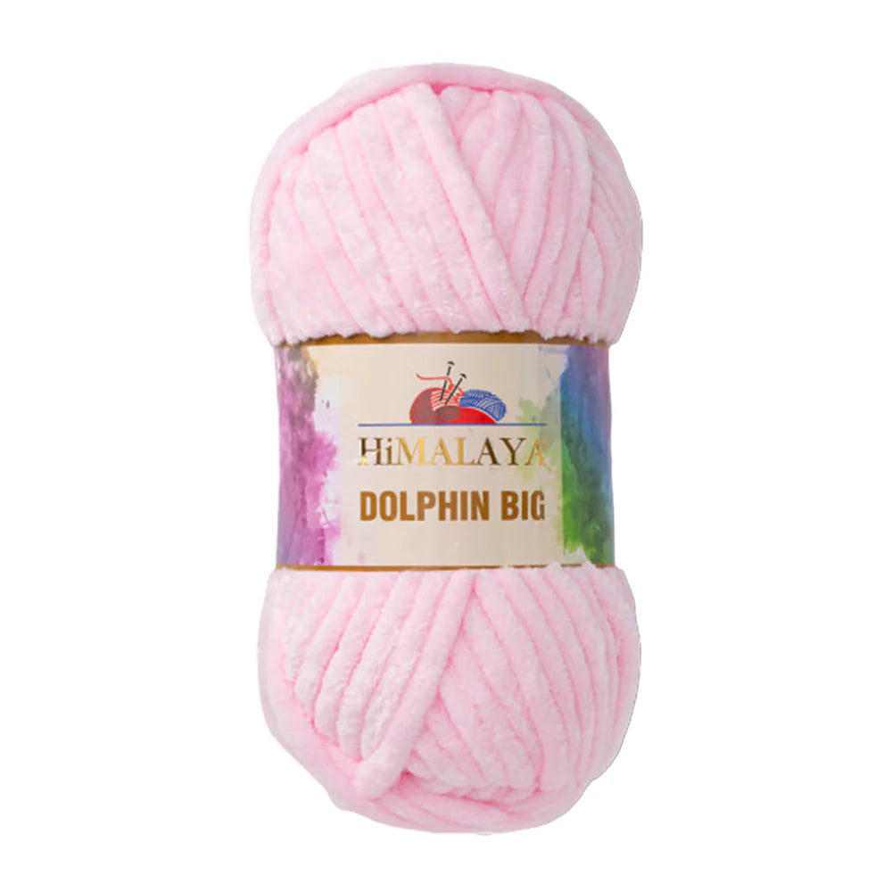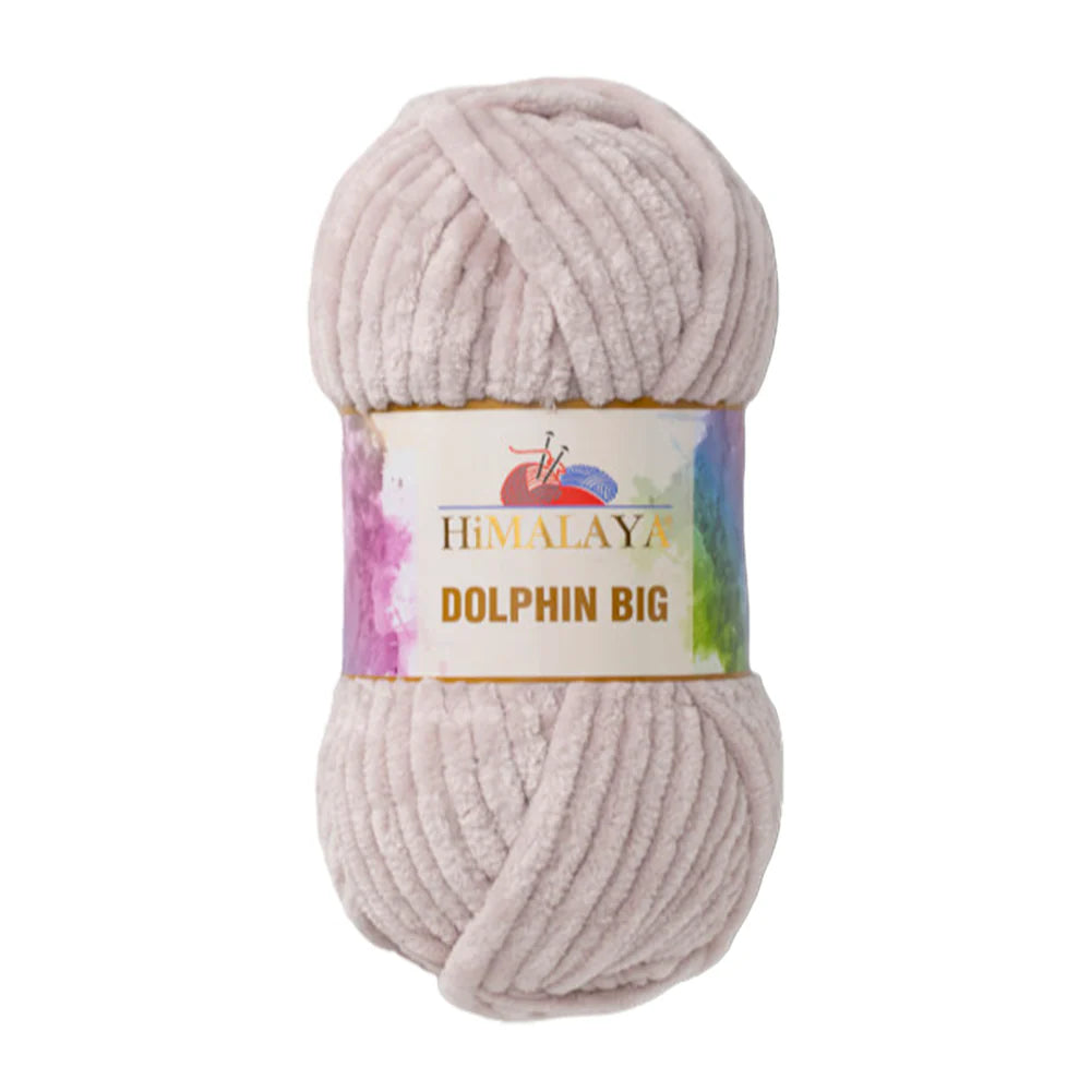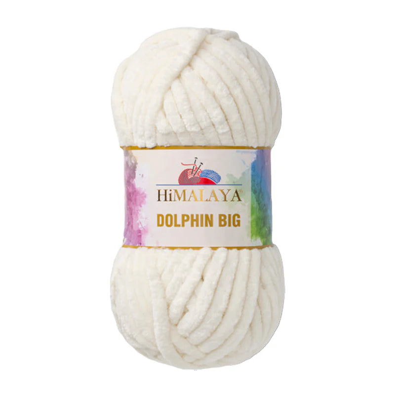 Himalaya Dolphin Big es un hilo estilo chenilla supergrueso, elaborado con fibras de poliéster 100 % suaves. Su textura excepcionalmente suave y aterciopelada proporciona a los proyectos una sensación acogedora y esponjosa, ideal para trabajos rápidos de punto o crochet gruesos que destacan tanto por su estética como por su comodidad.