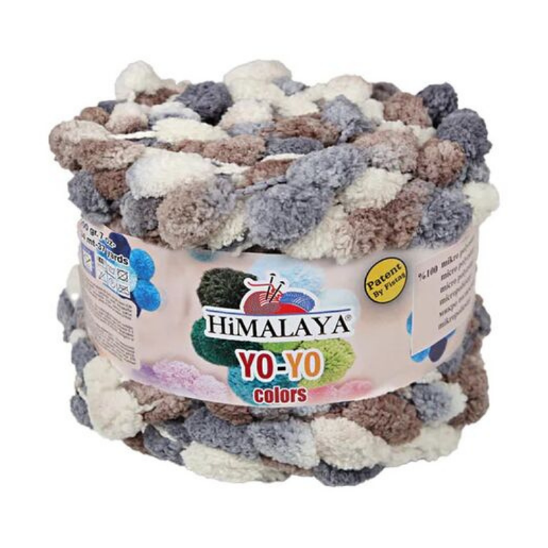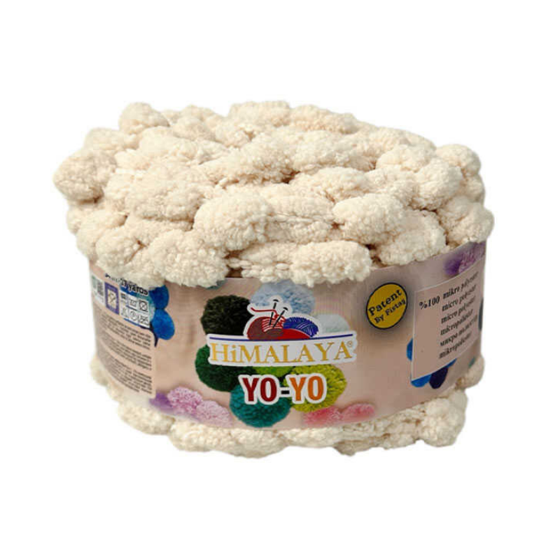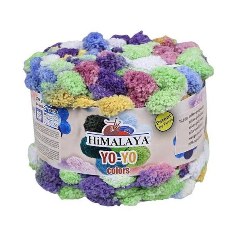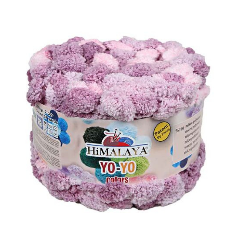 Himalaya Yo-Yo is a soft, fluffy, pon-pon yarn . Each 200g skein is 34m (37yd) and works best with 3.5mm (US4) needles, offering easy handling and smooth knitting.