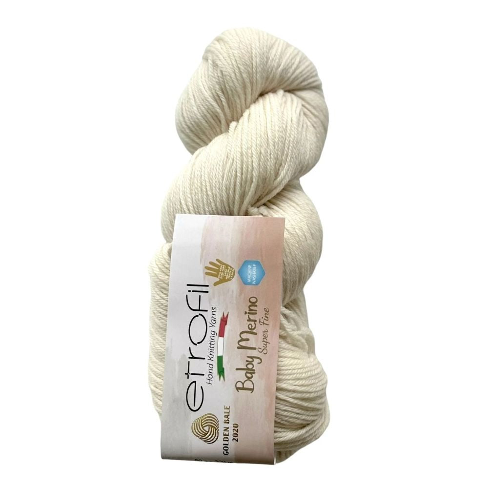 Etrofil Baby Merino est un fil haut de gamme, doux et respirant, composé à 100 % de laine mérinos, réputée pour sa chaleur naturelle et sa douceur au toucher. Ce fil fin/DK offre une excellente définition des points et un tricotage facile, ce qui le rend idéal pour les vêtements délicats et les accessoires douillets.