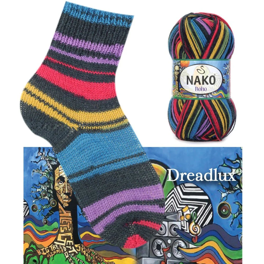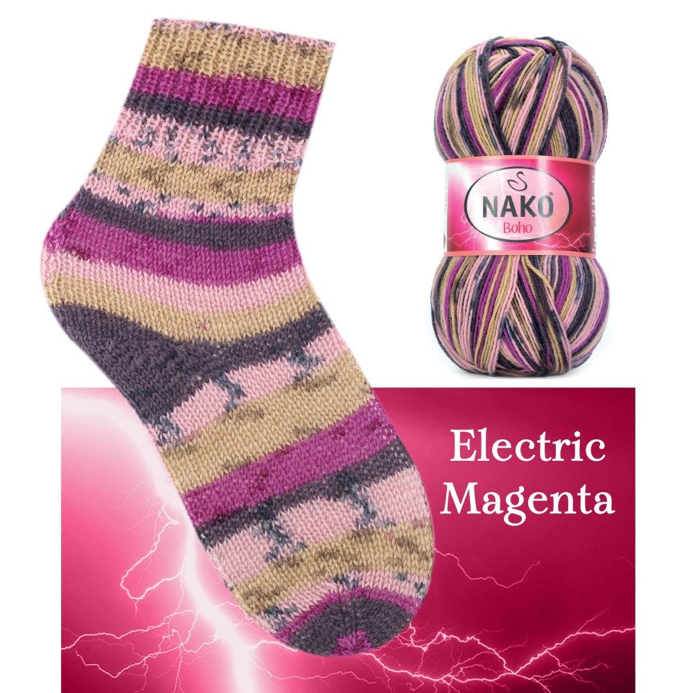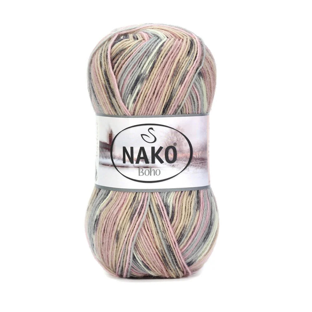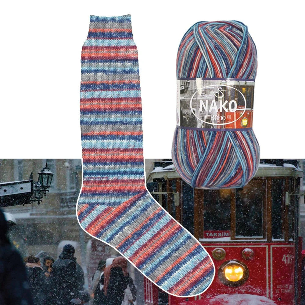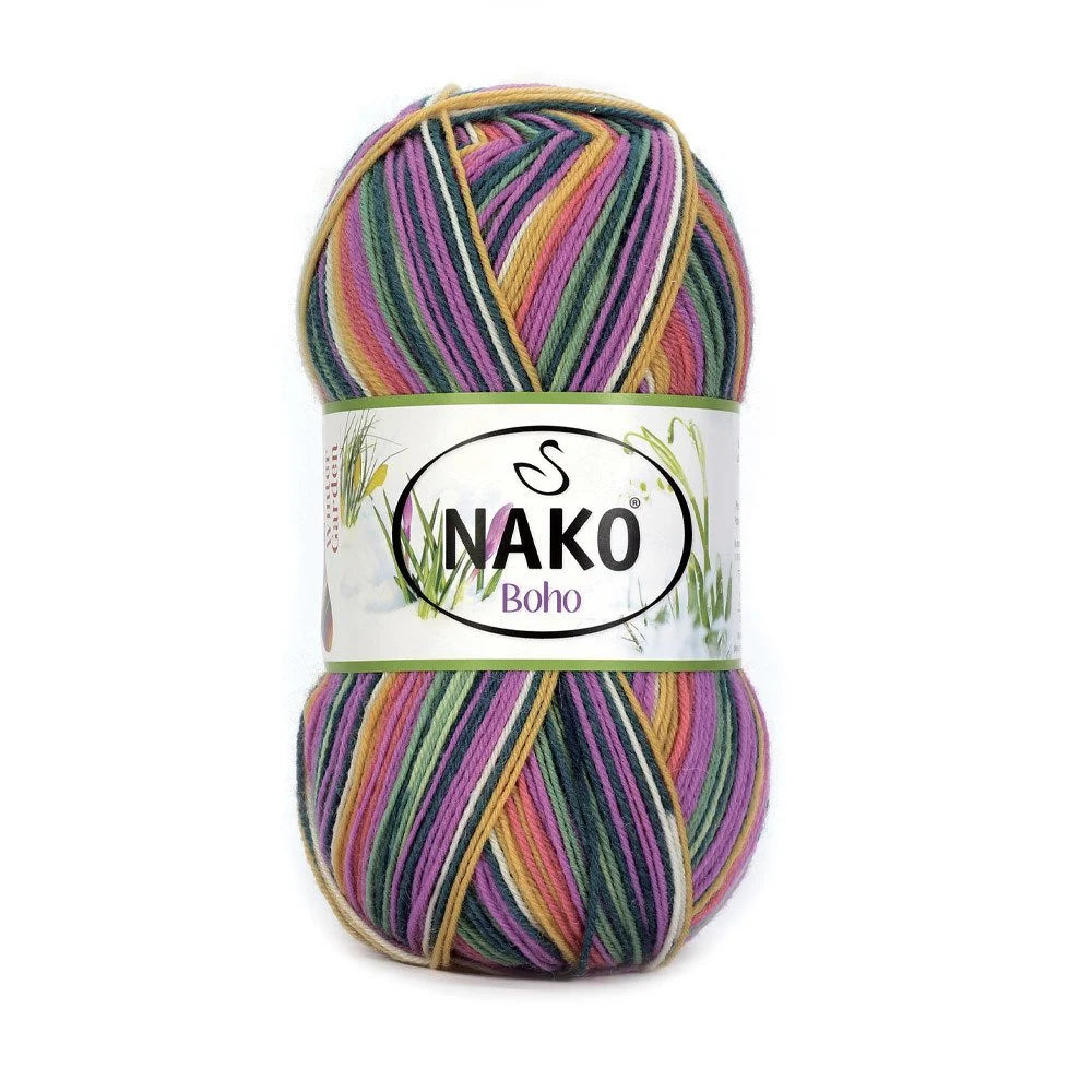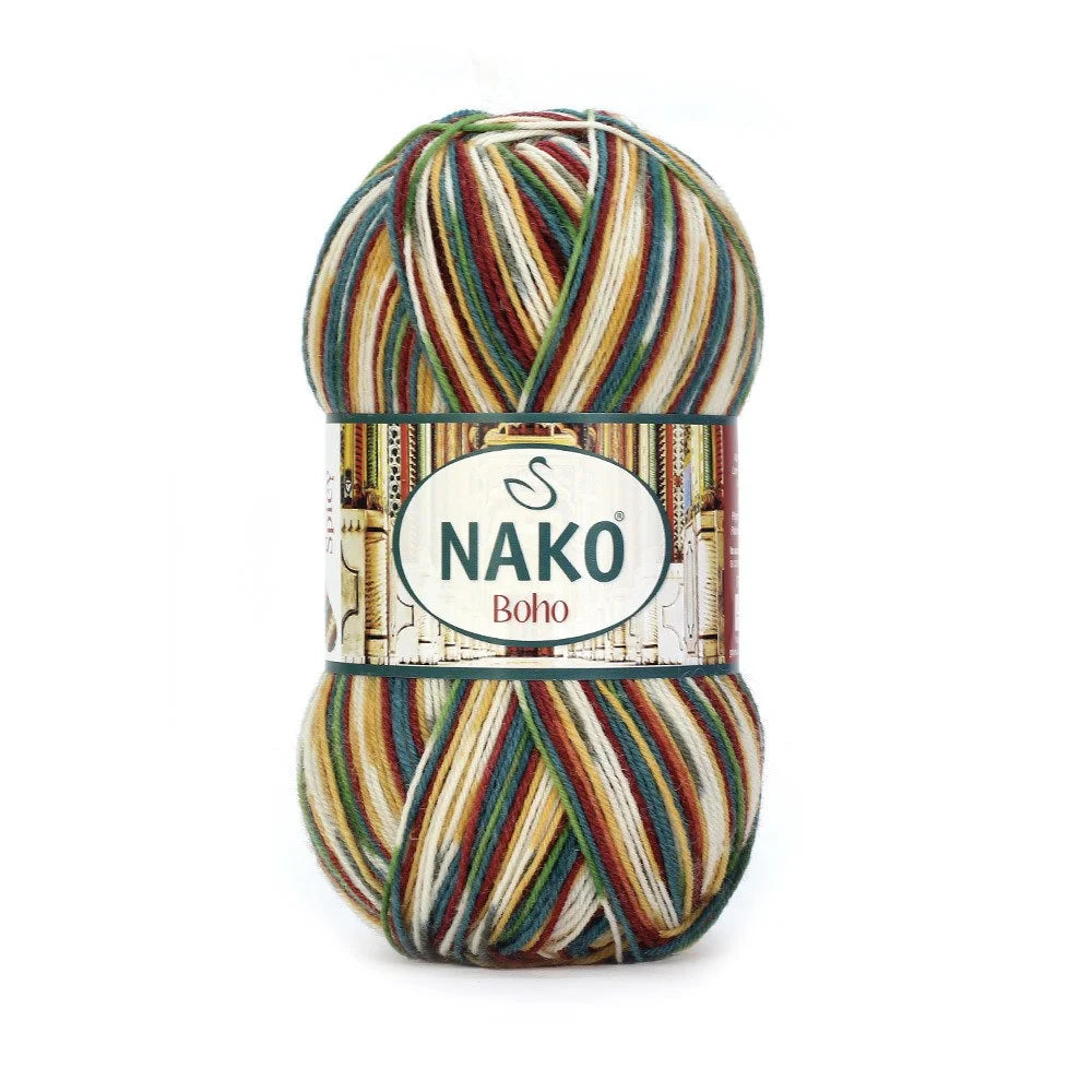 Introducing Nako Boho Desen Socks Yarn, a high-quality wool blend that is perfect for crafting cozy socks, scarves, and hats. With 25% polyamide and 75% wool, this yarn offers durability and warmth, while its weight of 100 g and length of 400 m make it a great value. Recommended for crochet hook size 2 mm and needle sizes 2.5 mm -3.5 mm.
