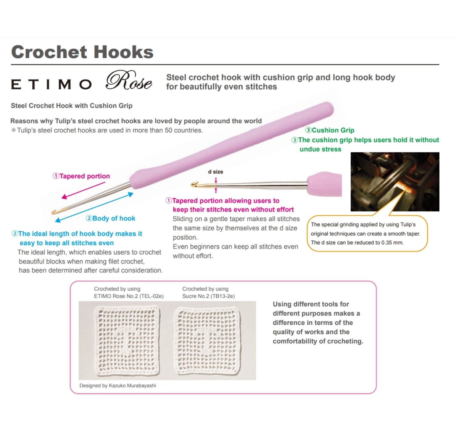 The hook with a fine finish enables users to catch a yarn easily and crochet smoothly.