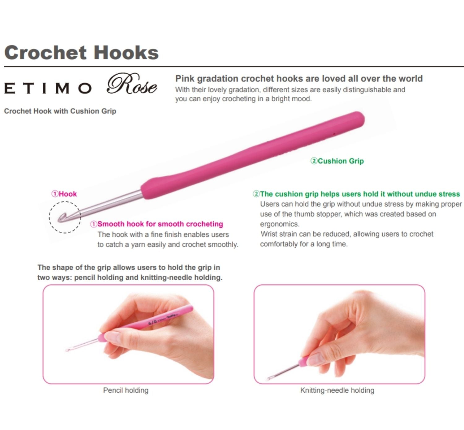 Pink gradation crochet hooks are loved all over the world