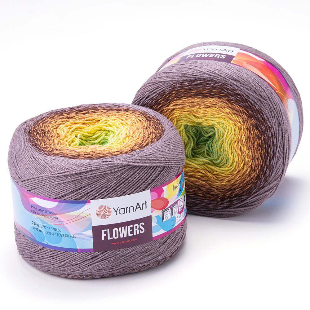 YarnArt Flowers, which combines harmonious colors in the same cake yarn is ideal for your summer knits due to its 55% cotton content. Flowers is perfect for shawls, dresses, blouses, cardigans, baby garments and home accessories. Each cake ball is 1000 meters long so a single ball is enough for a medium sized knit.
